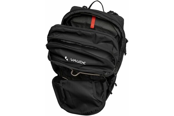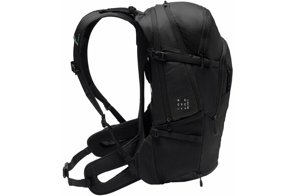 Prostorný Alpin 25+5 je dokonalým společníkem pro přejezd Alp nebo prodloužené vícedenní túry! Plnohodnotný MTB batoh má spoustu charakteru, uvnitř i venku. Jeho skvěle odvětrávaný systém odpružení Aeroflex 3D vám ulehčí při zpocených jízdách do kopce. S "posunovací délkou zad" lze ramenní popruhy individuálně nastavit na jakoukoli velikost trupu. Velkorysá hlavní kapsa s prostorem pro hydratační vak lze pro organizaci horizontálně rozdělit. V prostorné spodní komoře najde perfektní místo spací pytel nebo přezutí pro pohodové večery. Vpředu nahoře je kapsa na cennosti s organizérem ze síťoviny. Mezitím je velká přední přihrádka rozdělena na přihrádku na nářadí a za ní kapsa na dokumenty nebo mapu. Velké, strečové vnější síťované kapsy nabízejí prostor pro chrániče nebo láhve s vodou. Boční kapsa pro váš telefon a malá kapsa na pravém boku umožňují snadný přístup i při jízdě. Držák na helmu, připevnění reflexního bezpečnostního světla a pláštěnka doplňují jeho mnoho funkcí. V případě potřeby lze objem batohu rozepnout a rozšířit o 5 litrů, zatímco kompresní popruhy po stranách zajistí, že se vaše vybavení nebude ohánět. Označení VAUDE Green Shape znamená ekologické, funkční produkty vyrobené z udržitelných materiálů s certifikací bluesign®.