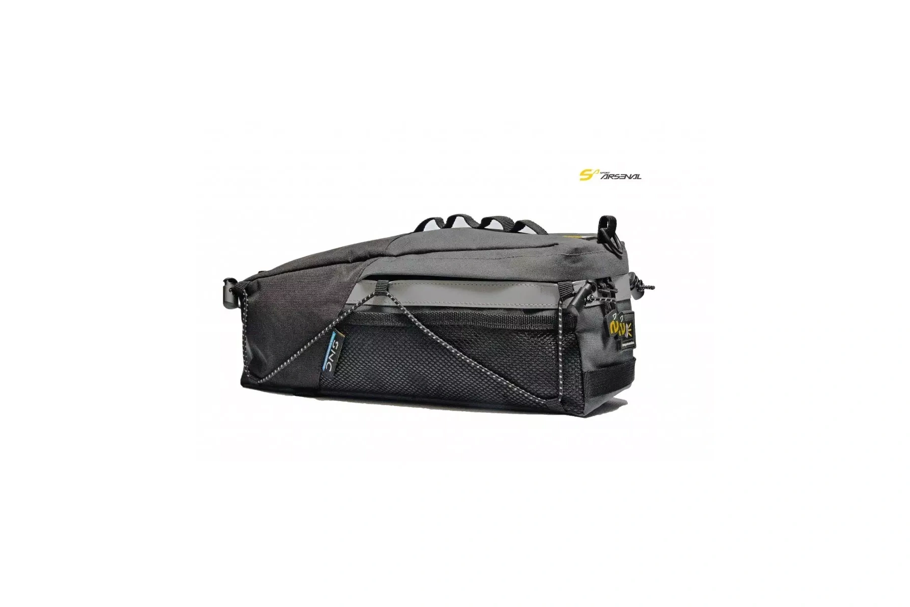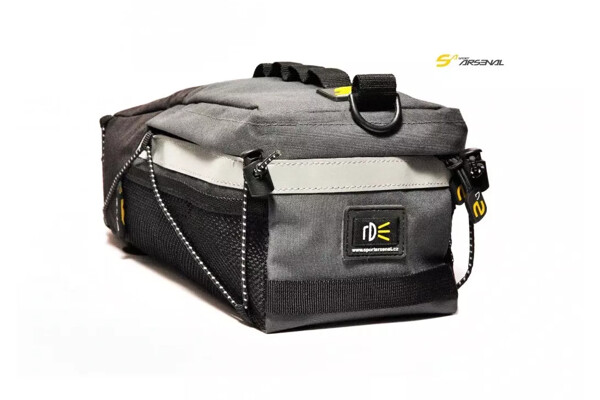 Praktická brašna středního objemu s upínáním k nosiči suchými zipy. Ideální brašna pro kombinaci s nosičem umístěným na sedlové trubce-např. art. Obecně je brašna kompatibilní se všemi nosiči Sport Arsenal. Boční gumicuky slouží k variabilní změně objemu brašny /zatažením-povolením/, ale také fixují váš náklad. Praktický popruh pro přenášení na rameni je součástí brašny. 3M bezpečnostní reflexní pásek na brašně zaručí vaši lepší viditelnost na cestách.