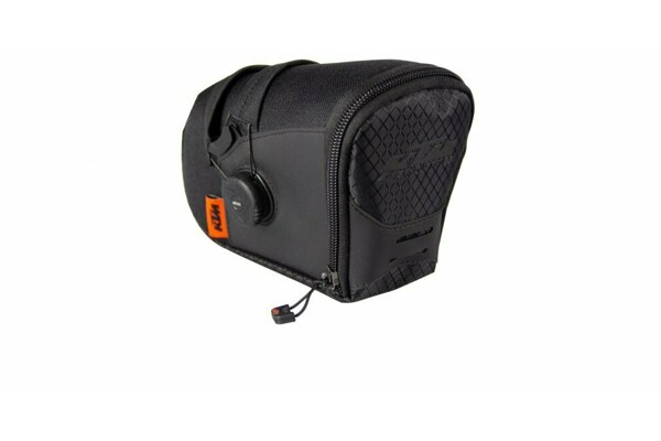 Praktická taška pod sedlo KTM II Atop na mobilní telefon, peněženku a drobnosti, o objemu 0,5 L. Uzavírání pomocí inovativního systému BOA.