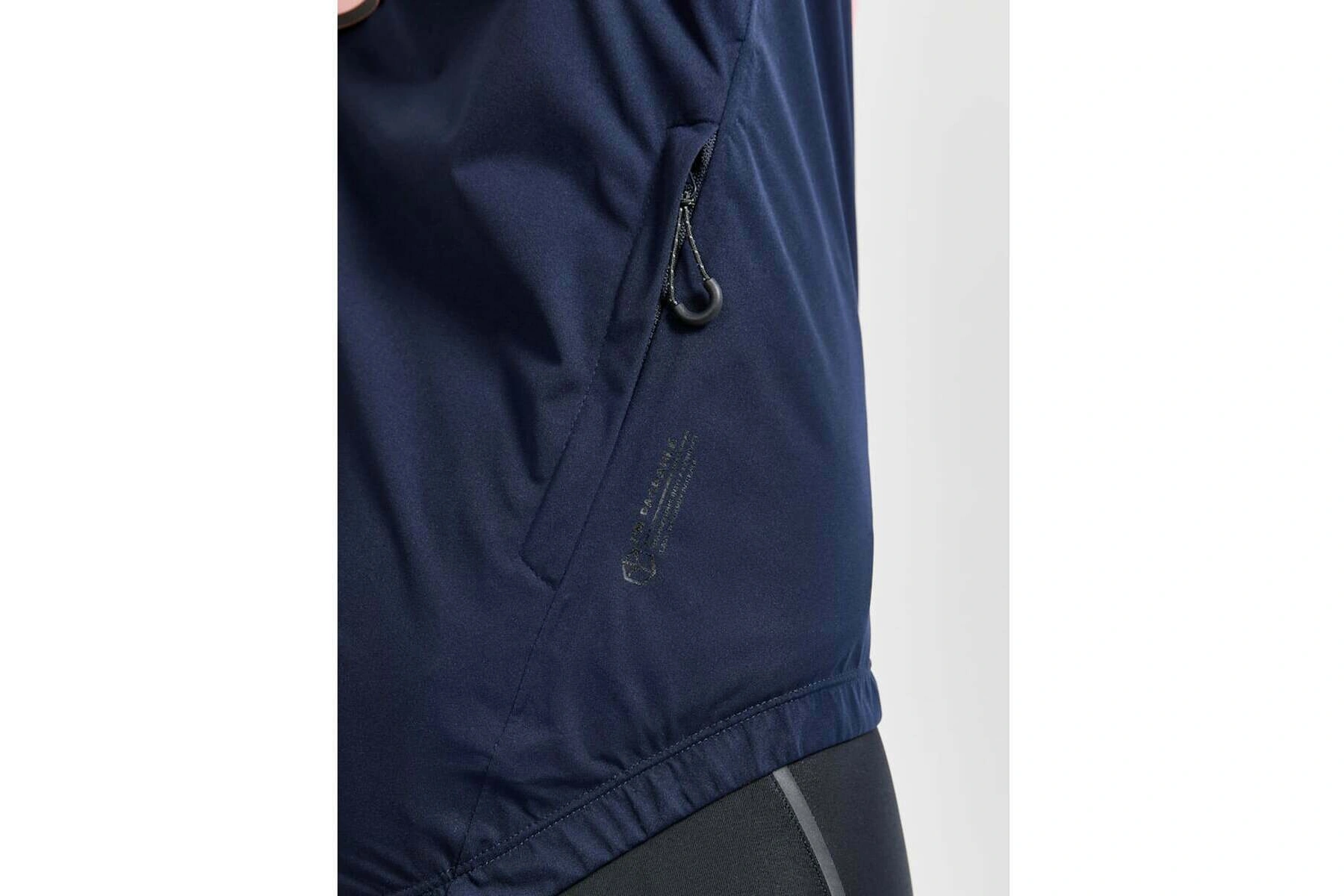 Ergonomicky řešený střih odpovídající jezdecké pozici na kole. Bundu lze sbalit do kapsy skryté ve švu.
