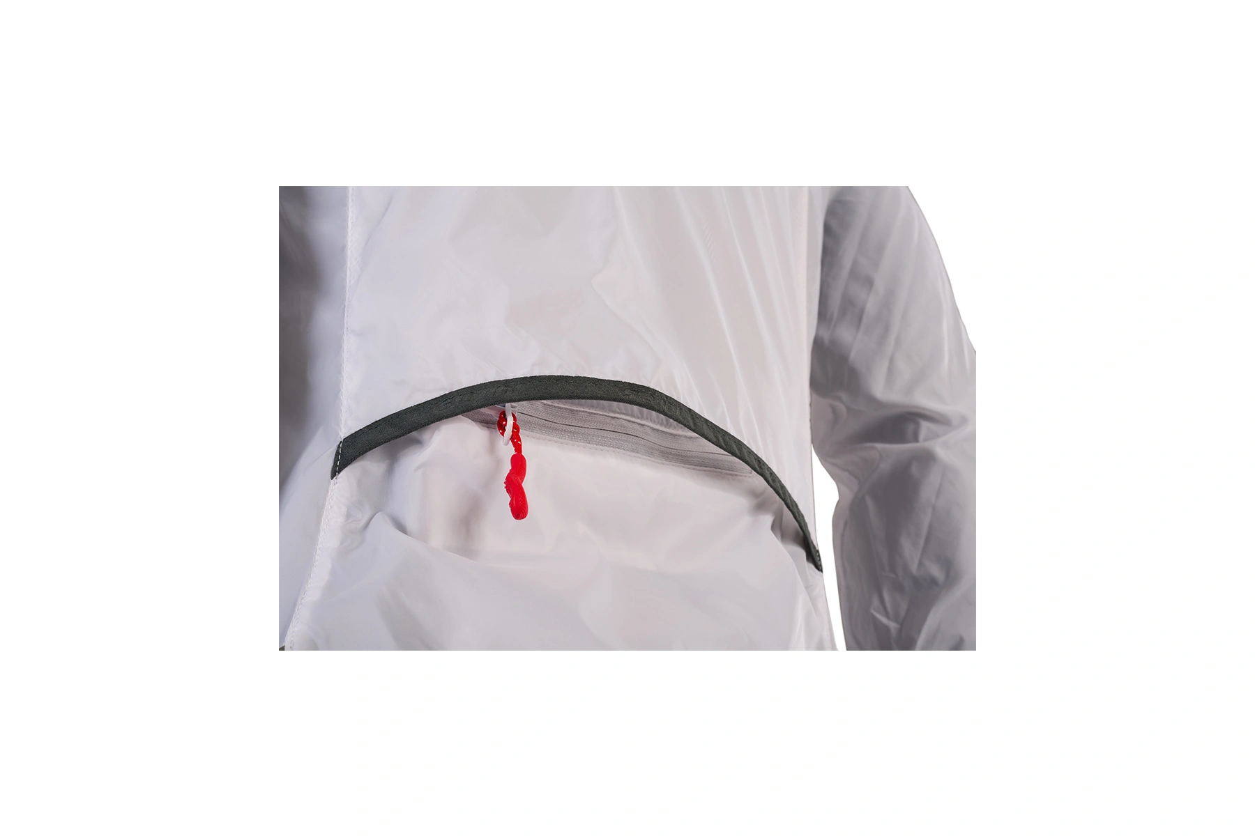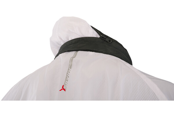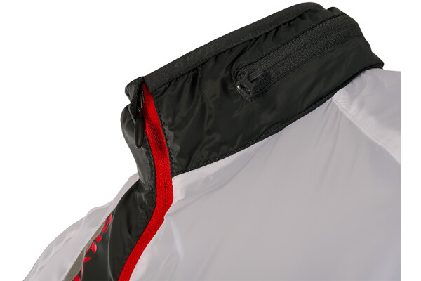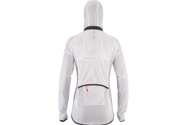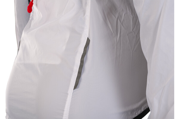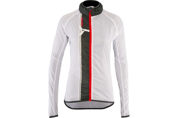Dámská cyklistická bunda GELA je vyrobena z velmi lehkého a hustě tkaného materiálu (100% polyamide). Díky tomu je větruvzdorná a je tak lehká, že když ji máte na sobě, tak o ní téměř nevíte. Má dlouhý hlavní zip, který je na konci pod bradou překrytý ochrannou légou. Bundu můžete velmi snadno během několika vteřin sbalit do zadní kapsy. Sbalená bunda se vejde i do zadní kapsy na dresu a můžete ji tak mít u sebe při každé vyjížďce. Když je počasí opravdu nepříjemné, může vám posloužit kapuce, která je schovaná v límci. Stačí rozepnout zip a vyndat ji. Díky gumě v lemu kapuce vám perfektně přilne k hlavě. Límec je z vnitřní strany z počesaného materiálu.
