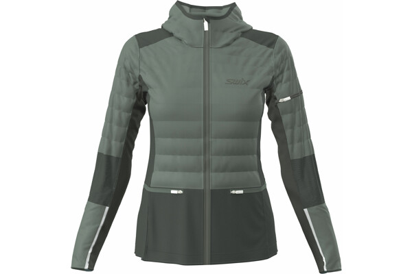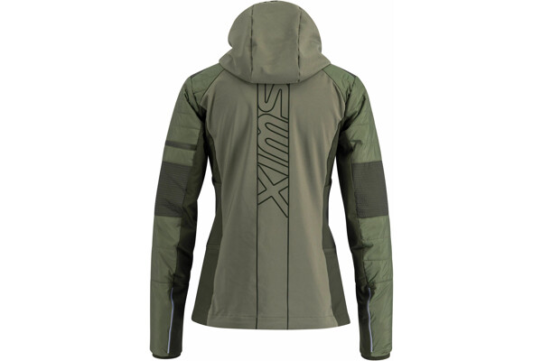 Swix Horizon je řada zimního oblečení určená výhradně pro ženskou polovinu populace, která naslouchá svým smyslům a dává přednost teplu a pohodlí během tréninku. Horizon je prodyšná hybridní bunda navržená speciálně pro ženy a určená pro trénink o vysoké intenzitě v chladných podmínkách. Přední strana a rukávy jsou prošívány materiálem PrimaLoft®, který zajišťuje odolnost proti větru a vodě a zároveň tepelnou izolaci. Zadní díl tvoří technický, větru odolný softshell s pevnou strukturou. Nejsou zde žádné membrány bránící odvodu tělesného potu.