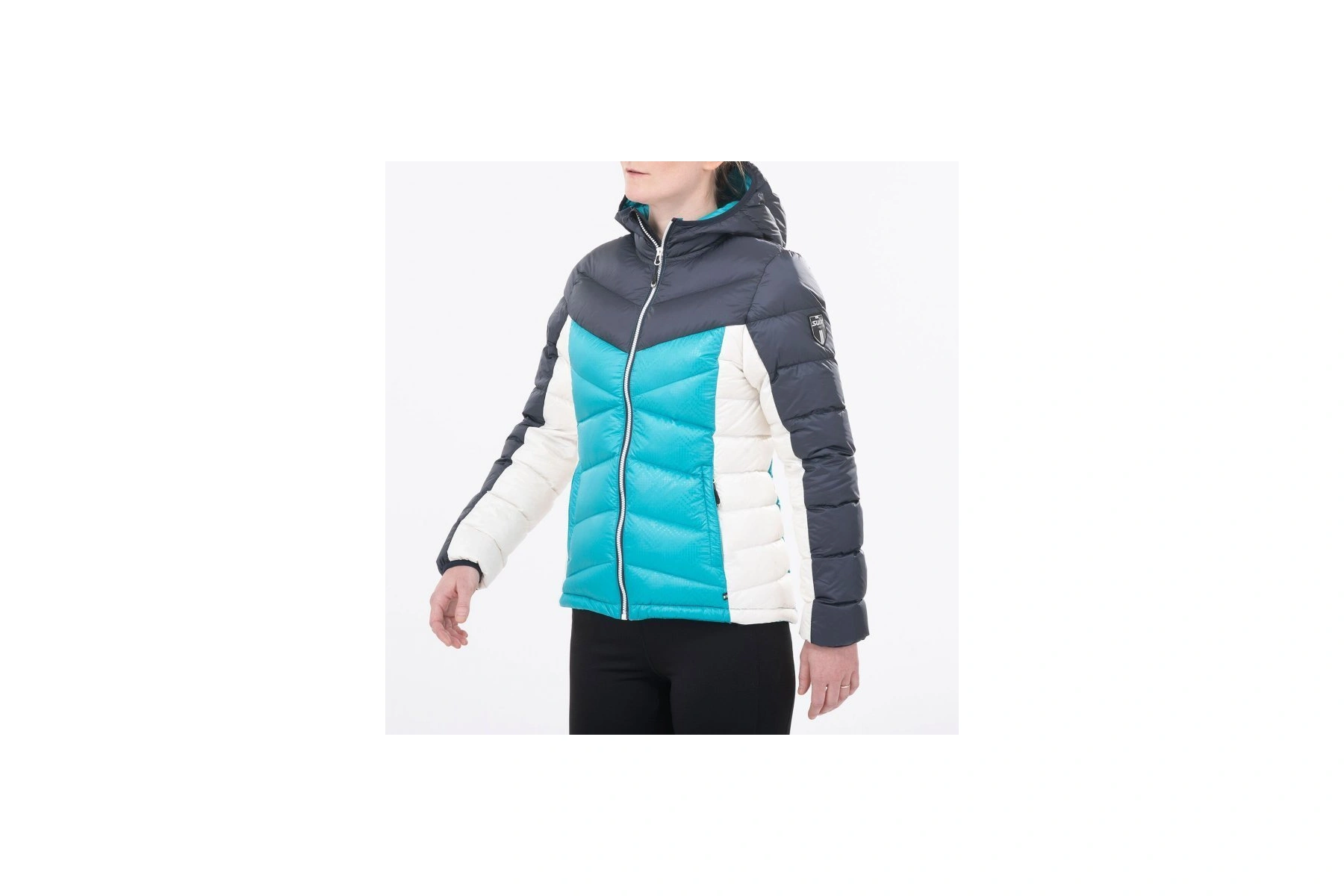 Materiál: 100% polyester 20D s voděodolnou úpravou/ podšívka 100% nylon, izolace bílé kachní peří 200gr (90% prachové 10% peří)