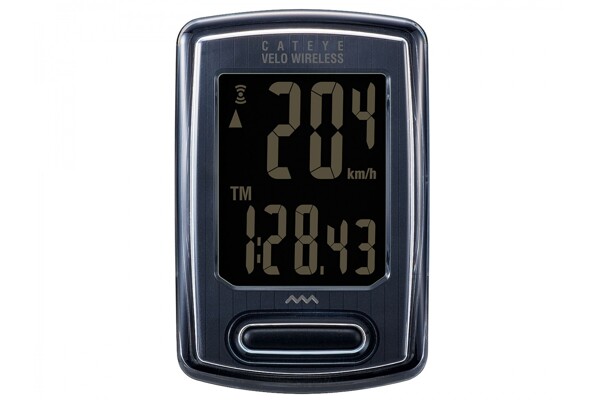 Bezdrátový cyklopočítač CATEYE, 8 funkcí: denní / celková vzdálenost, okamžitá / průměrná / max. rychlost, čas jízdy, hodiny, spotřeba kalorií.