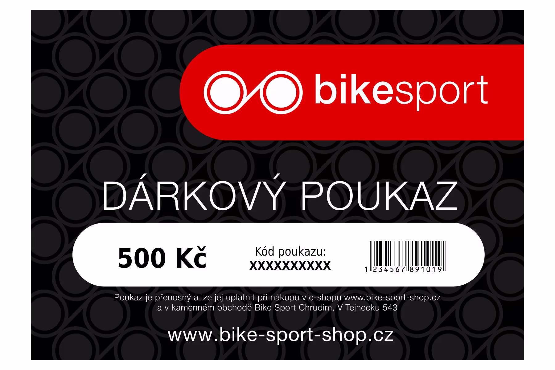 Dárkový poukaz obsahuje unikátní kód, který lze zadat v nákupním košíku na www.bike-sport.chop.cz. Dárkové poukazy můžete použít i v naší kamenné prodejně v Chrudimi. Platnost poukazu není časově omezena.