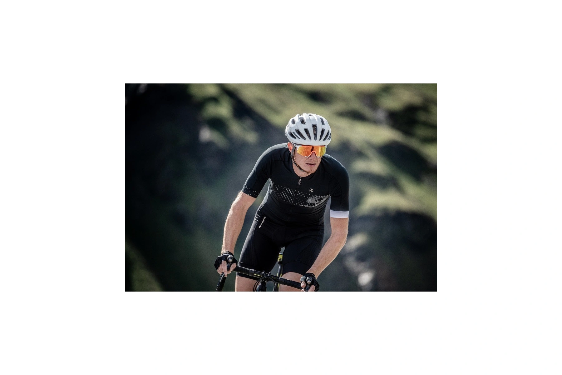 Pánský cyklistický dres úzkého anatomického střihu Ansino se třemi zadními kapsami. Střih dresu je poměrně dost úzký, aby šel použít na silniční cyklistiku, ale i na sportovnější MTB. Použitý materiál je příjemný, pružný a maximálně funkční (74% polyester, 26% elastan). Vpředu je dres výrazně zkrácen, aby dobře seděl při ohnutém posedu na kole. Po celé délce je kostěný zip, který se snadno ovládá jednou rukou. Prodloužená záda mají stahování pomocí široké gumy se silikonem, dres tak dobře sedí a nevyjíždí nahoru. Ansino má moderní prodloužené rukávy řezané laserem, v levém rukávu je všitý designový proužek jako lem. Ke zvýšení bezpečnosti jsou použity reflexní prvky.