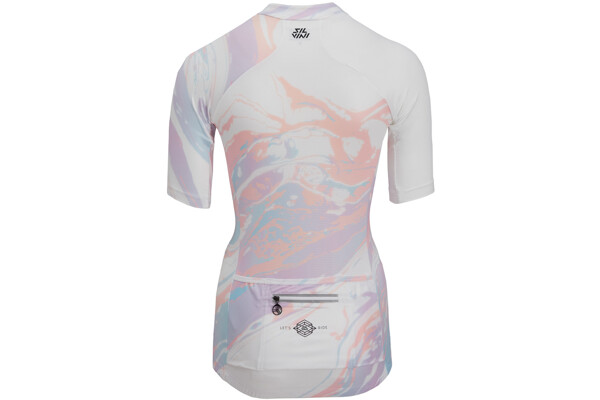 Catirina je lehký, elastický, všestranný dres vhodný jak na silniční, trekingová, tak i MTB kola v teplých měsících. Dres je vyroben z prodyšného a rychleschnoucího materiálu Light MESH s technickými detaily včetně prodyšné vsadky na zádech a předního skrytého zipu s polodlouhou délkou. Catirina je dres užšího střihu s krátkými rukávy a prodlouženou zadní částí, na které naleznete tři hlavní kapsy, plus čtvrtou se zapínáním na zip. Spodní okraj dresu je zakončený silikonovým páskem zabraňující posunu a samozřejmostí jsou i reflexní prvky zvyšující vaši bezpečnost při zhoršené viditelnosti.