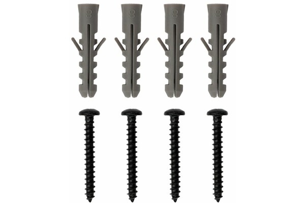 Dodáváno včetně mont. příslušenství - 4x hmoždinka a 4x šroub 5x40 mm.