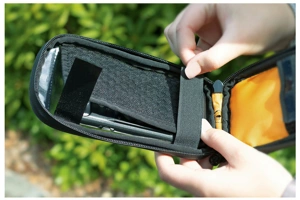 Extra kapsa vespod nabízí další prostor nejen pro klíče a peníze, ale také pro powerbanku COM/UNIT pro indukční nabíjení mobilního telefonu při jízdě na kole.