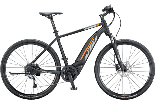 Elektrokolo KTM Macina Cross 520 pánské matte black/grey/orange. Krosové elektrokolo s novým nejvýkonějším pohonem Bosch Performance CX 4. generace s parametry 250W/ 75 Nm. Nové provedení rámu s polointegrovanou vysokokapacitní baterií 500Wh. Kvalitní kotoučové brzdy a komponentová výbava Shimano. Velikost kol je 700C.