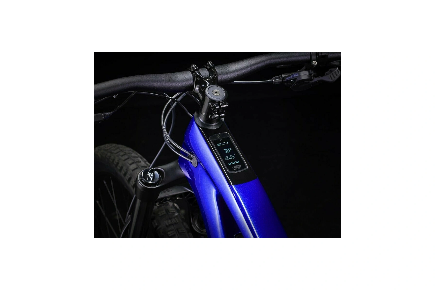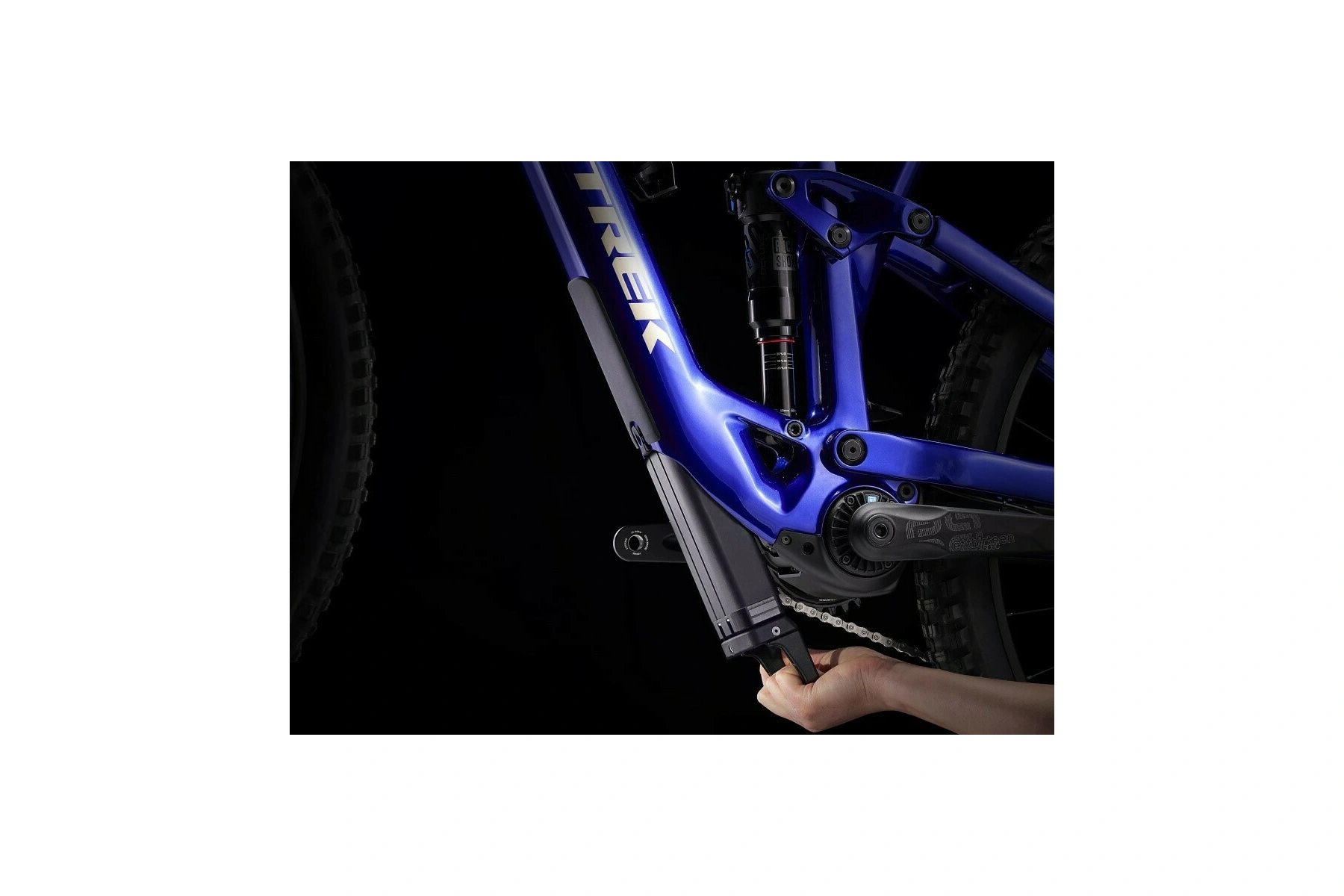 Rám z karbonu OCLV pro horská kola s 360Wh baterií zcela skrytou v rámu a válečkovou harmonickou převodovkou TQ s chytrým nabíjecím portem, integrovaný LED displej a nenápadný ovladač na řídítkách.