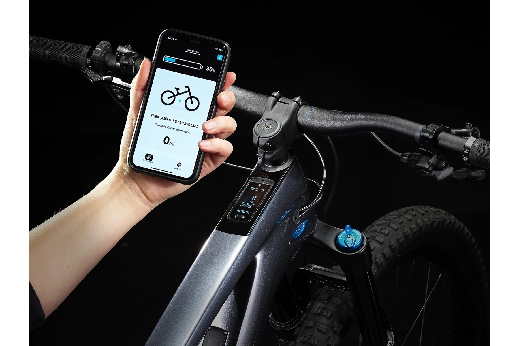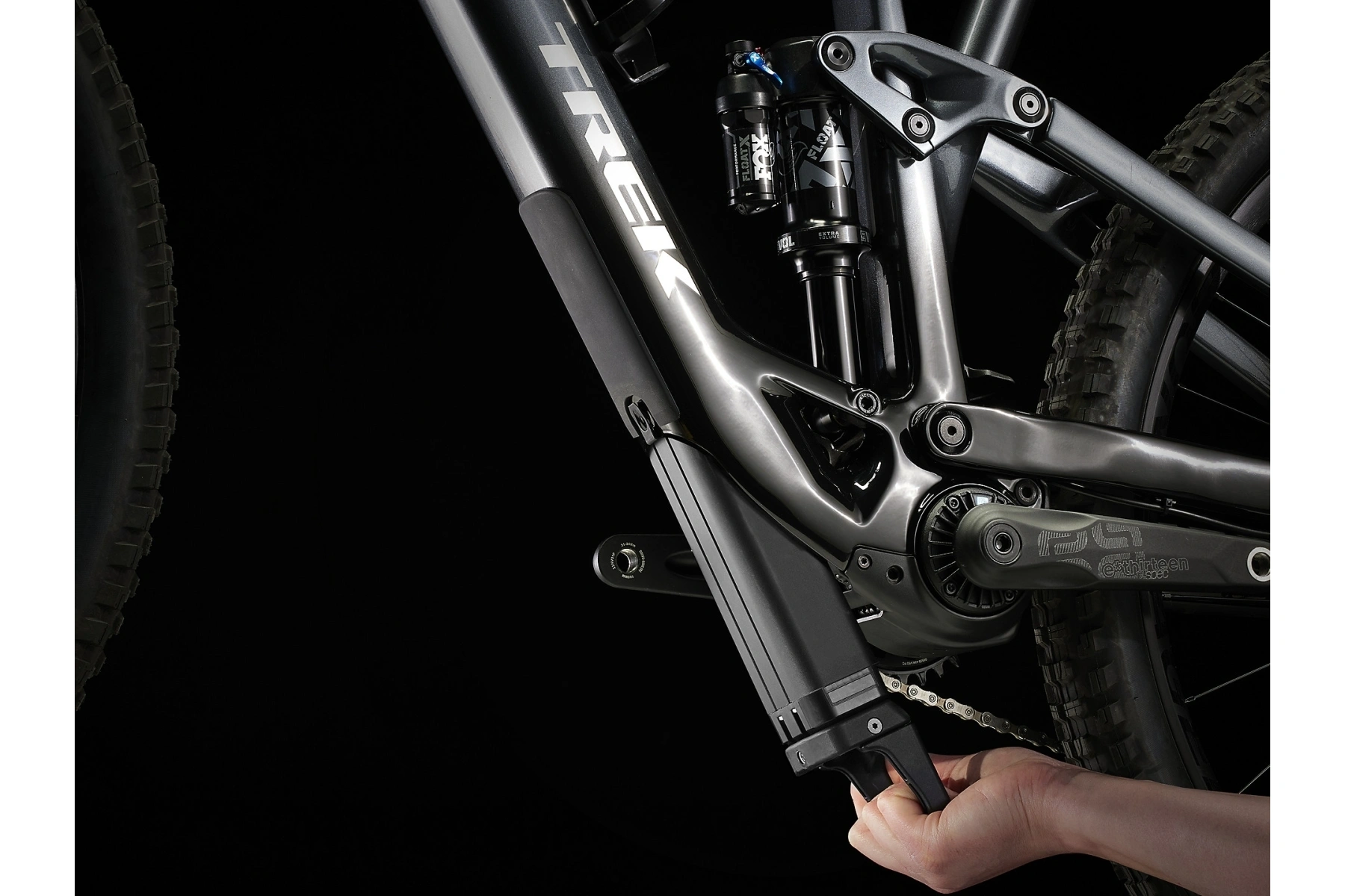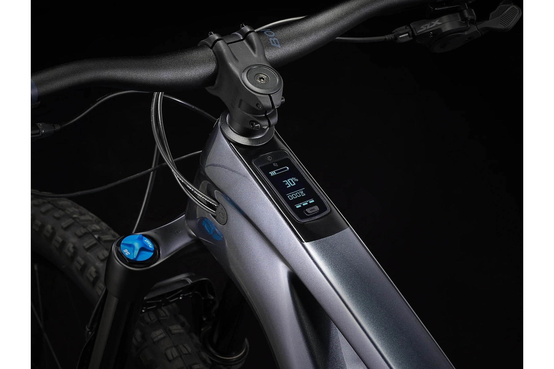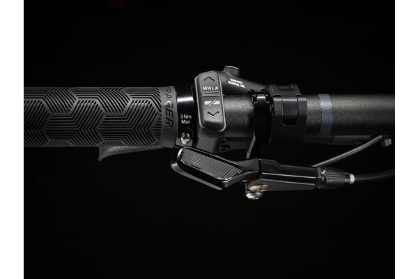 Rám z karbonu OCLV pro horská kola s 360Wh baterií zcela skrytou v rámu a válečkovou harmonickou převodovkou TQ s chytrým nabíjecím portem, integrovaný LED displej a nenápadný ovladač na řídítkách.