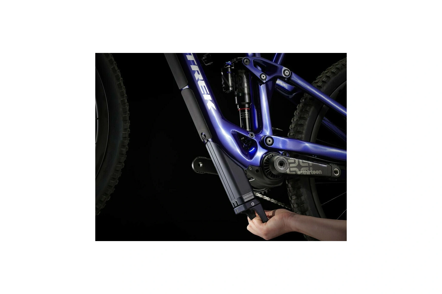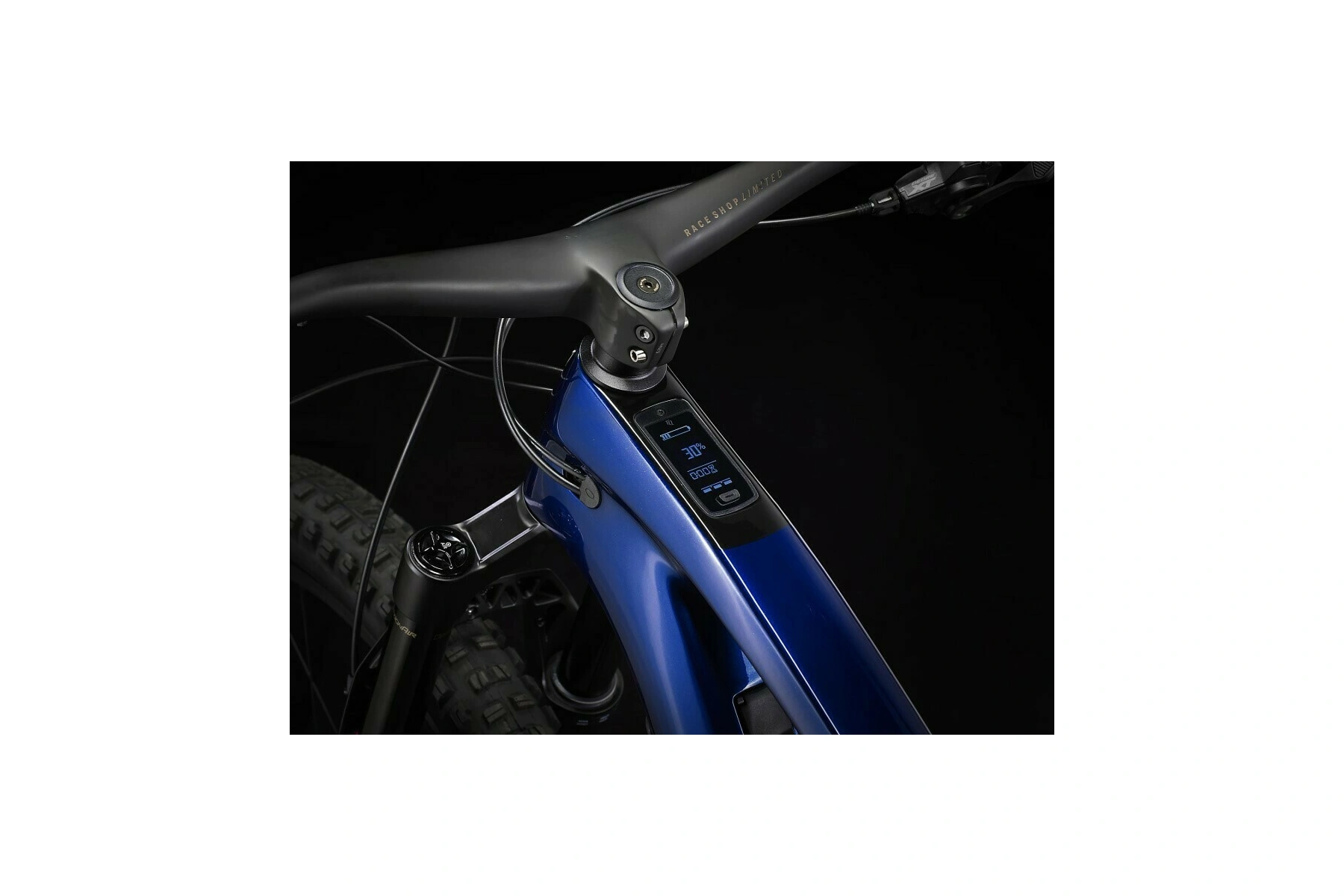 Rám z karbonu OCLV pro horská kola s 360Wh baterií zcela skrytou v rámu a válečkovou harmonickou převodovkou TQ s chytrým nabíjecím portem, integrovaný LED displej a nenápadný ovladač na řídítkách.