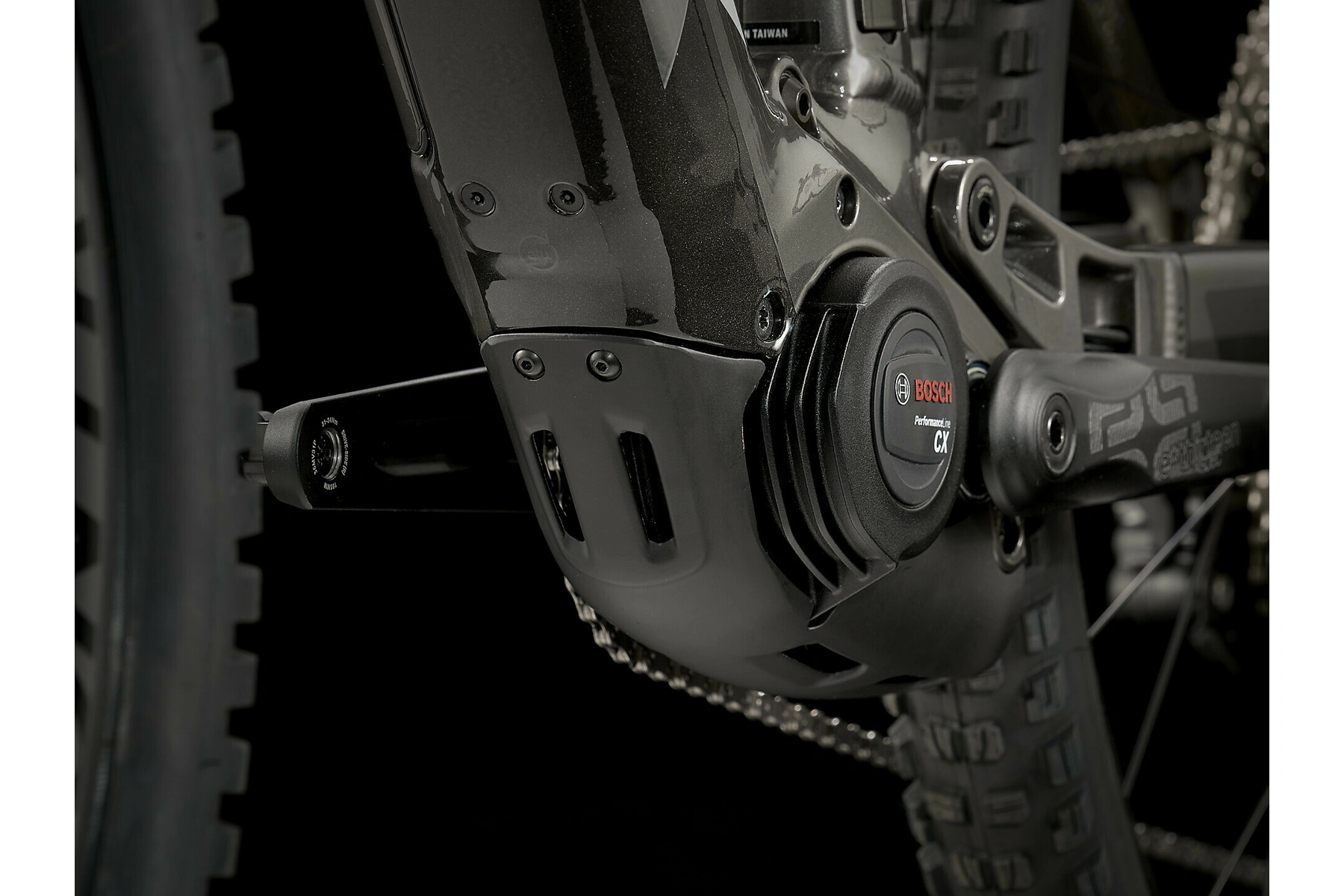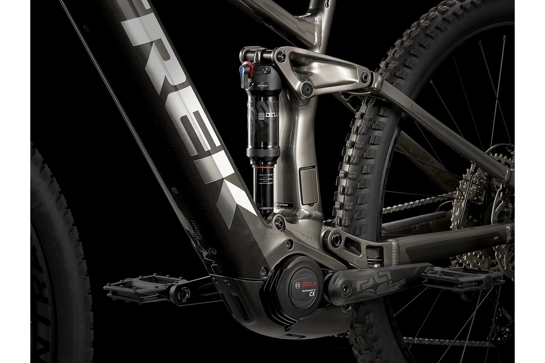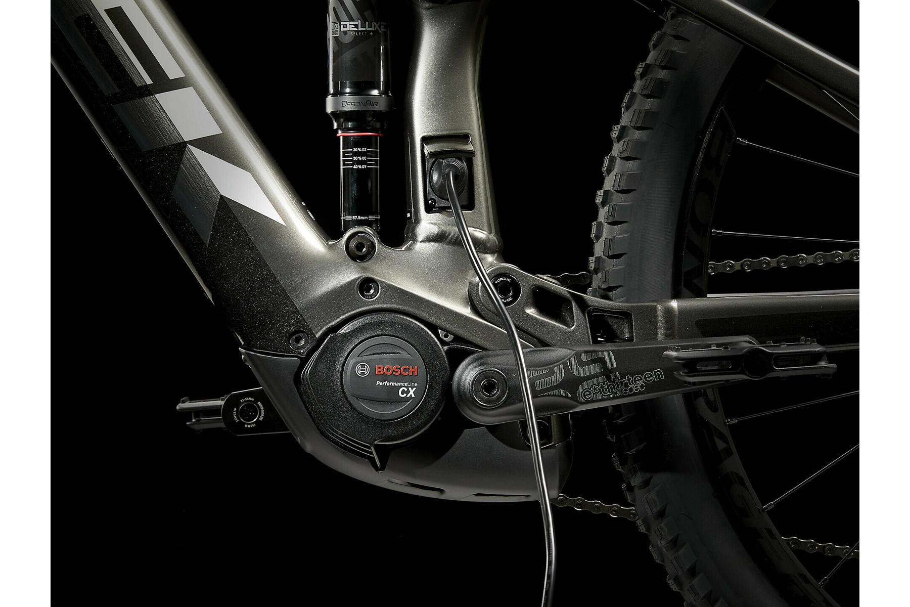 Solidní slitinový rám se zadním zdvihem 150 mm a zabudovanou 625Wh baterií, 160mm vidlice RockShox Domain RC, výkonný motor Bosch Performance Line CX (250 W, 85 Nm) s dopomocí až do 25 km/h a ovladač Purion. Pohon 1x12 Shimano Deore/XT s hladkým řazením, teleskopická sedlovka, účinné 4pístkové brzdy Shimano na sebevědomé sjezdy a 29palcová kola Bontrager Line Comp 30 připravená na bezdušový systém (včetně tmelu).