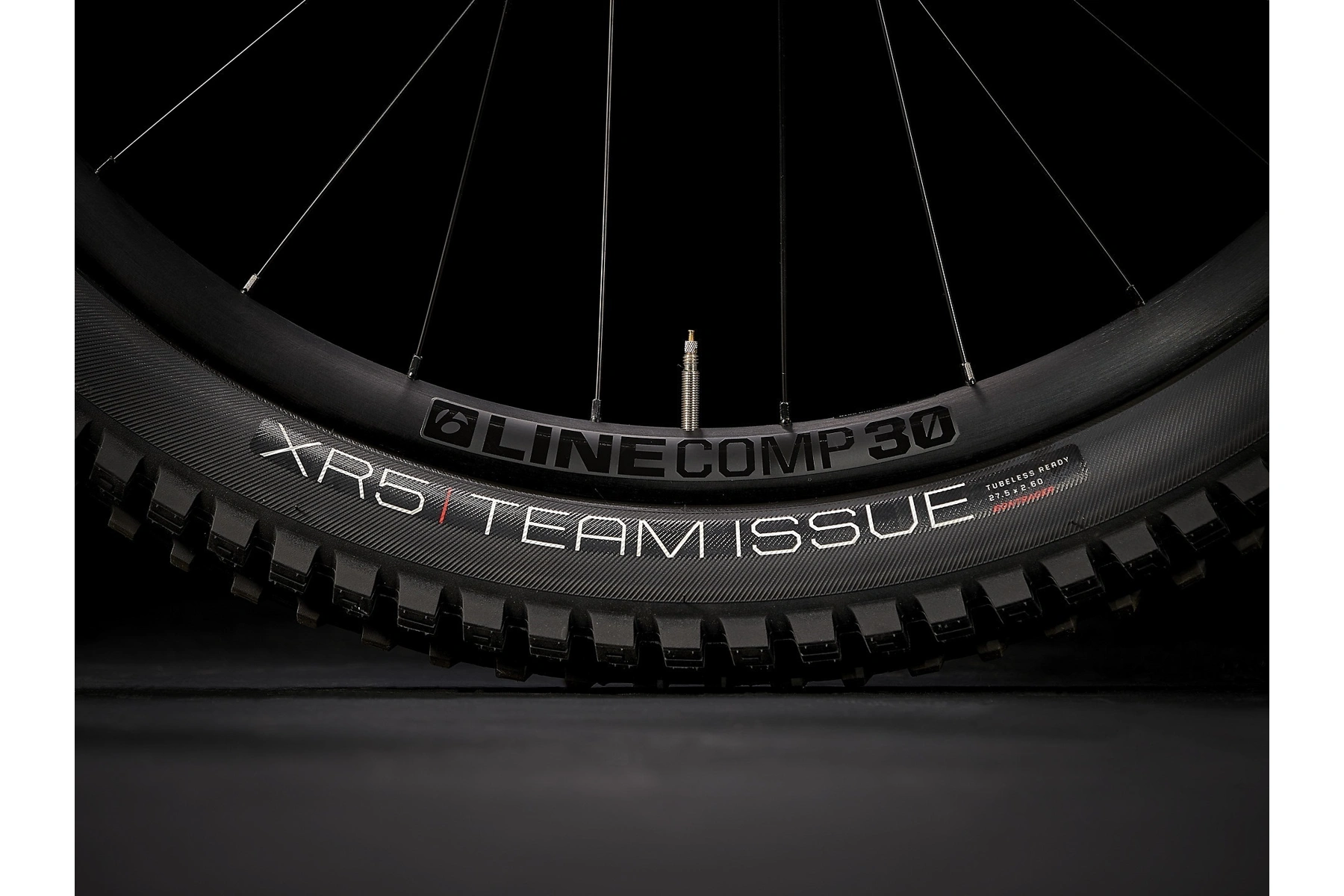 | Plášť | Bontrager XR5 Team Issue, možnost použití bezdušových plášťů, aramidová patka, 120 tpi, 29 x 2,50 palce. |