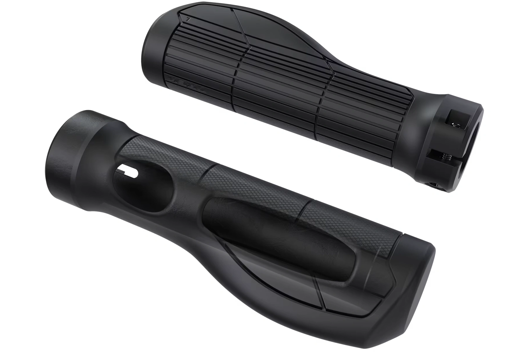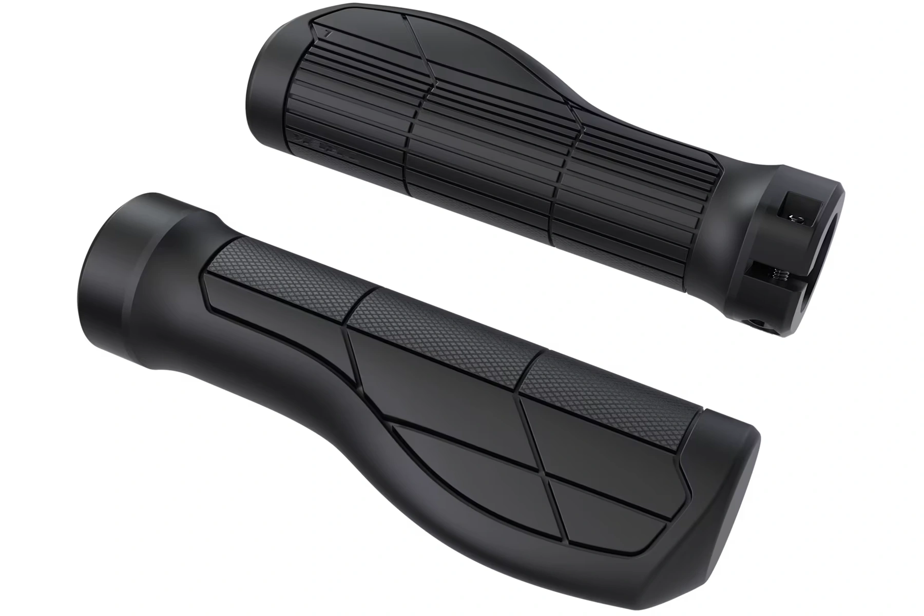 Uzamykatelný ergonomický grip s jednou objímkou a měkčím vzorkem a výřezy v jádru pro trvalé pohodlí při dlouhých jízdách.