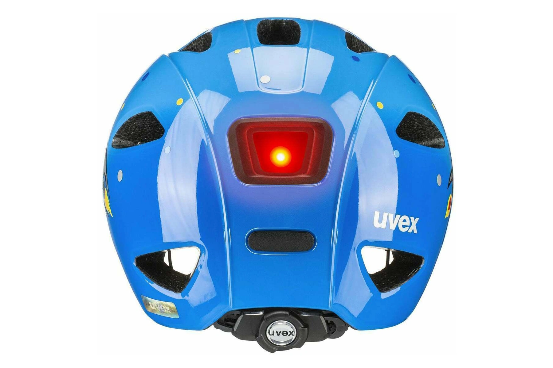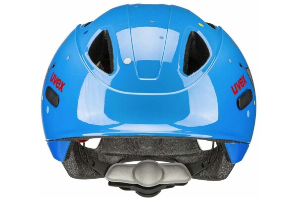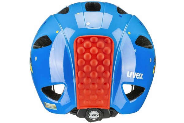 Díky inovativnímu uvex xTRA Shield, ve kterém je zorník přilby integrován do materiálu EPS, dostává citlivá oblast kolem čela optimální ochranu v případě nehody. Jednou obzvláště chytrou funkcí je uvex KID PROtect připevněný na zadní straně, který snižuje otřesy, které se mohou přenášet z dětské sedačky na helmu na nerovných cestách, a také zabraňuje sklouznutí hlavy z opěradla.