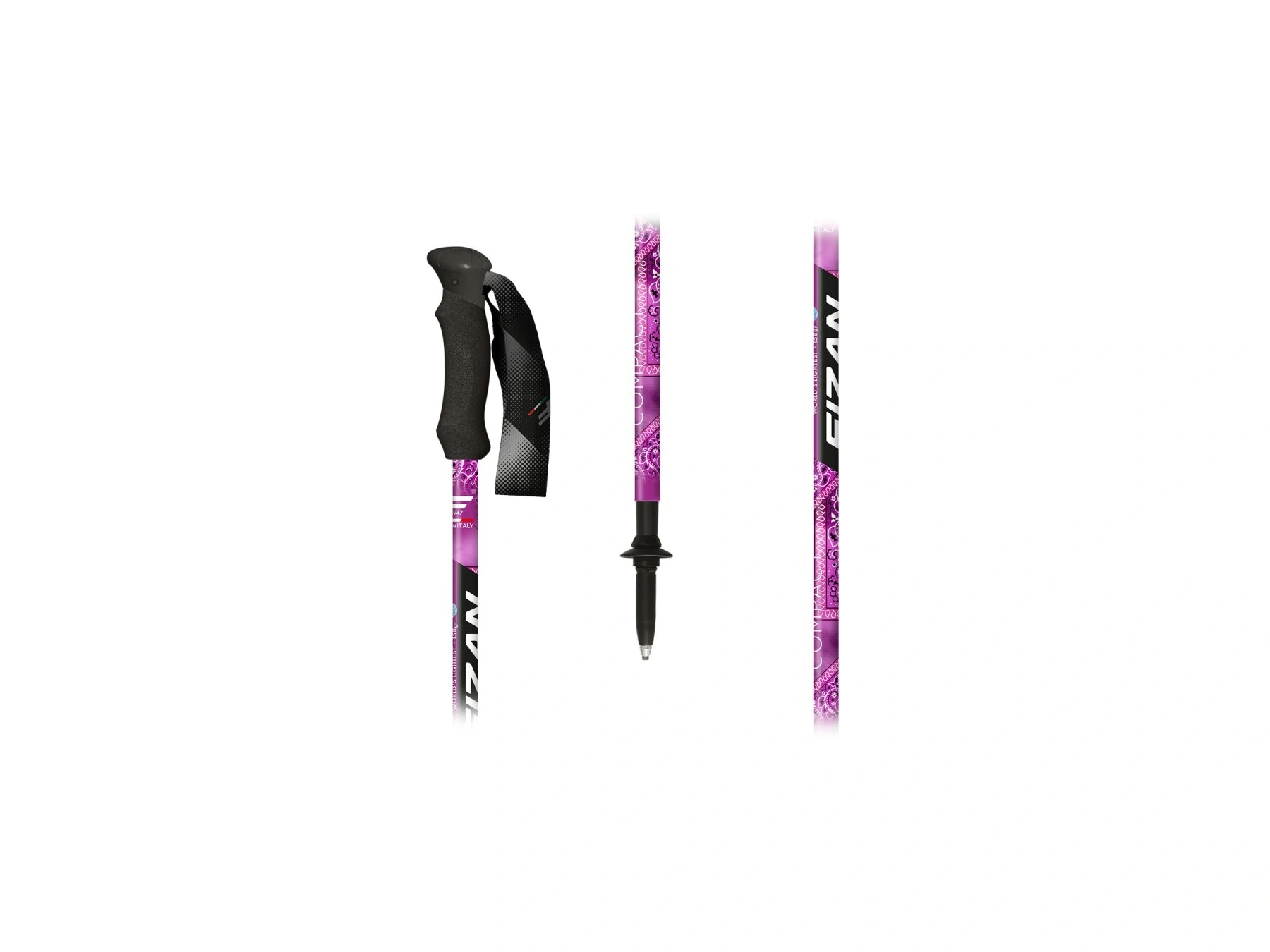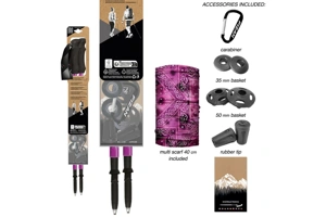• Trojdílná konstrukce z pevného hliníku je nastavitelná v rozmezí 59 až 132 cm a díky systému Flexy Lock se snadno a rychle přizpůsobí tvojí výšce i terénu. Ergonomická a měkká rukojeť z pěnového materiálu EVA padne do ruky jako ulitá, a když dojde na balení, vejdou se bez problémů i do menšího batohu. Hrot je z velmi odolného karbidu. Compact MS je varianta, která obsahuje i praktický nákrčník v designu hole.