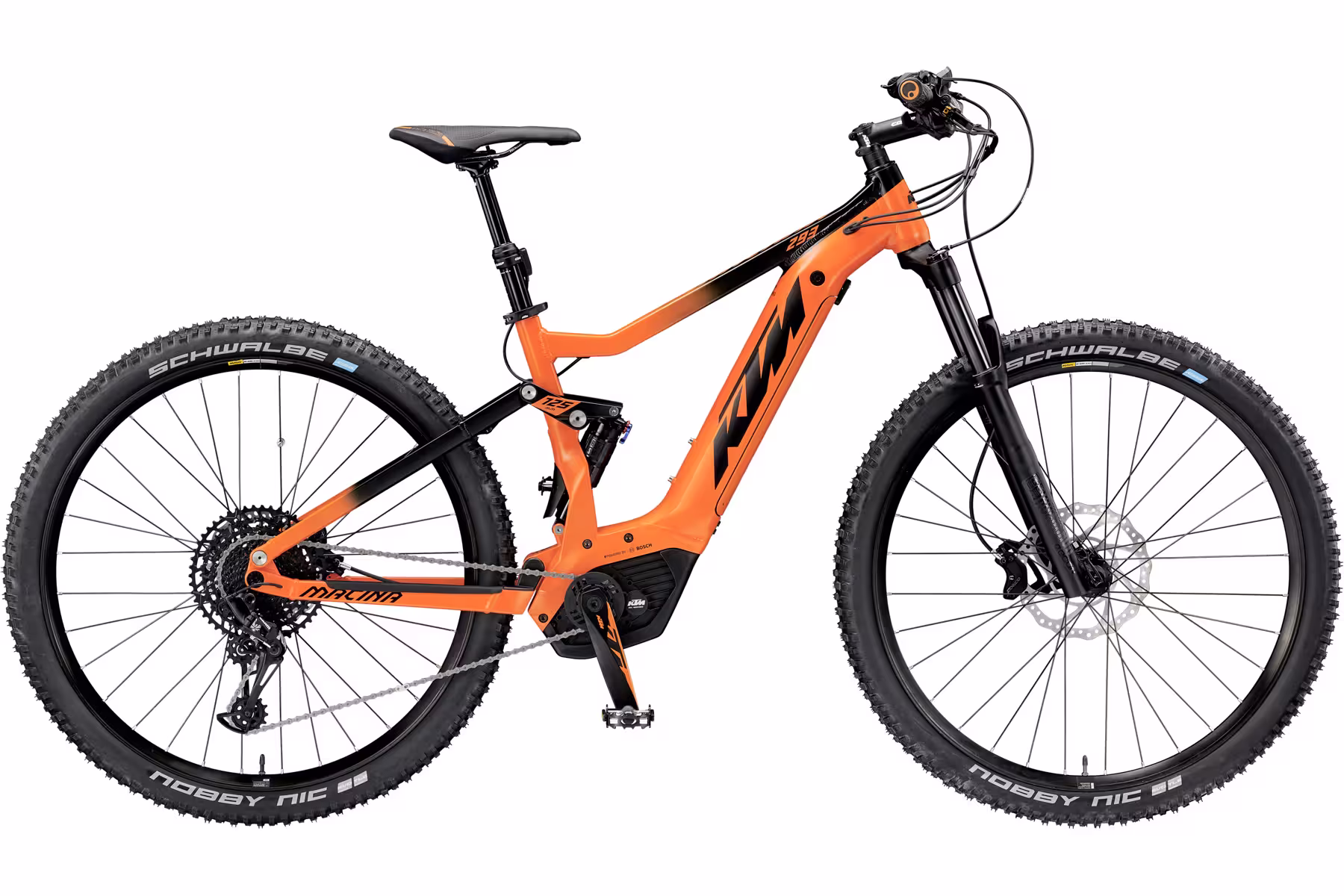 Velmi prodáváný celoodpružený model elektrokola v nabídce KTM Macina Chacana 293 s plně integrovanou baterií PowerTube Bosch 500Wh, pohonem Bosch Performance CX a displayem Intuvia LCD..