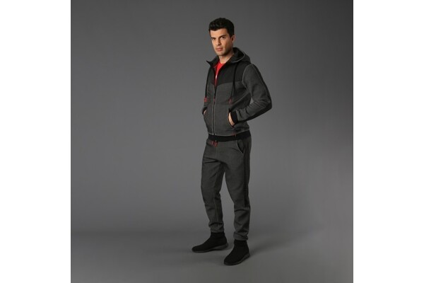 Pánské teplákové kalhoty, vyrobené z bavlny a polyesteru, pro oděv městského stylu, který nesnižuje pohodlí. Látkové vsadky na bocích a ergonomický střih mu dodávají šmrnc, zatímco boční kapsy a nastavitelný pas stahovací šňůrkou s kontrastními barevnými detaily dotvářejí oděv. Ideální pro volný čas doma i ve městě.