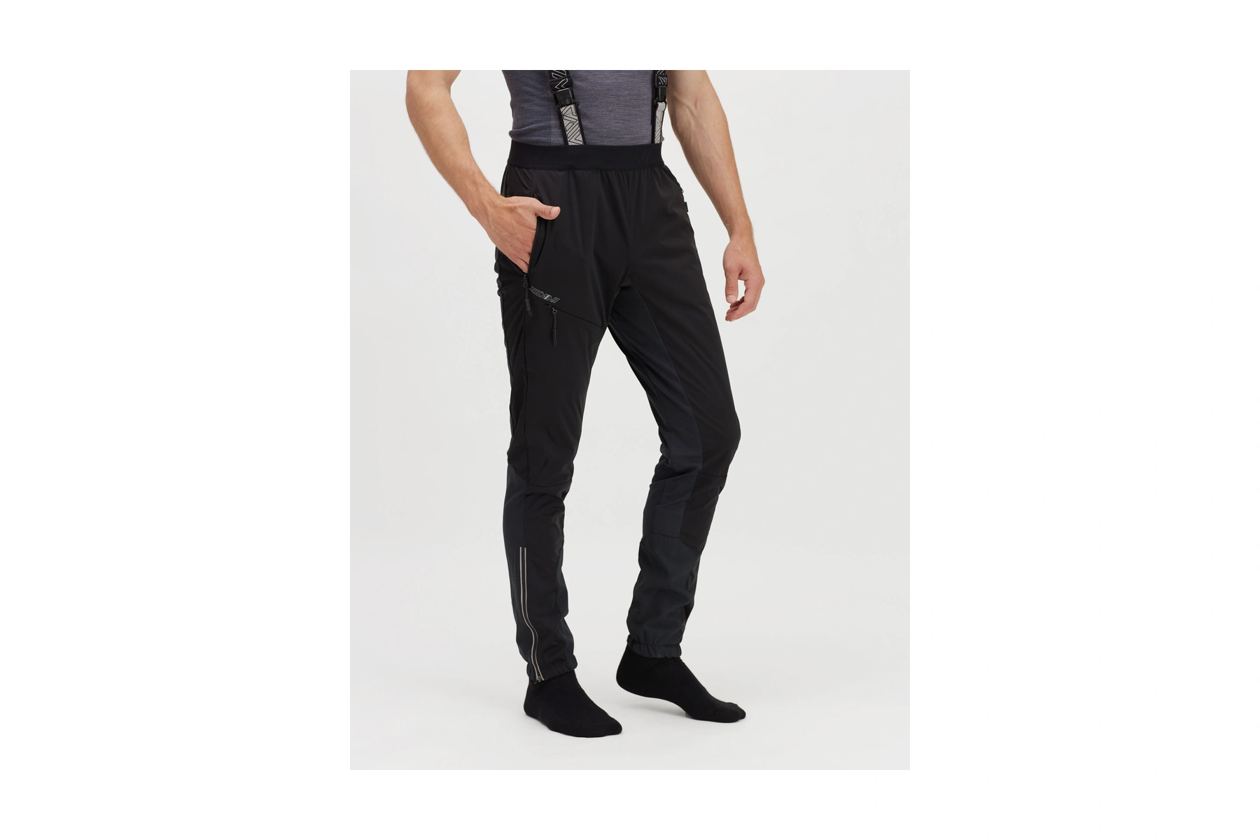 Kalhoty na běžky s předním dílem z tenkého softshellu. Zadní díl je vyroben z pružného a prodyšného materiálu.