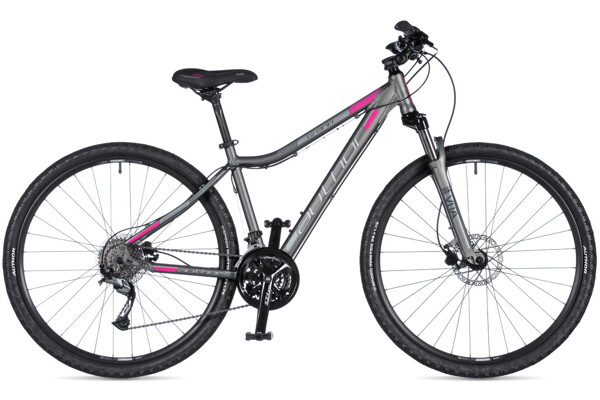 Dámské krosové kolo s lehkým duralovým rámen s hydroformním zpracováním, zamykatelnou odpruženou vidlicí RST Vita TnL a značkovými komponenty Shimano Altus/Acera 27speed. Snížený rám nabízí pro dámy pohodlné a zároveň bezpečné nastupování. Hydraulické brzdy Tectro Vela pro nekompromisní brzdný účinek za všech podmínek.