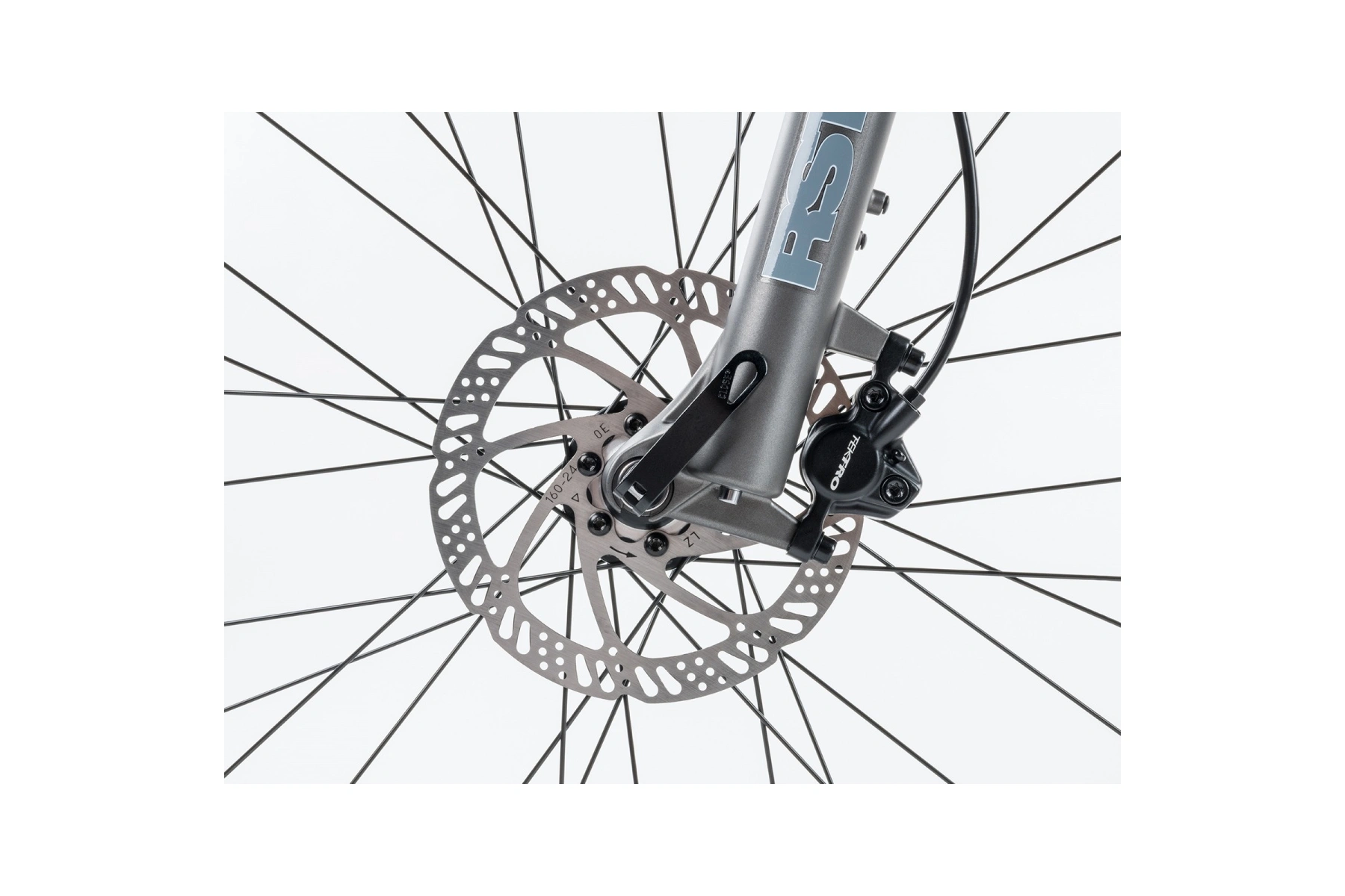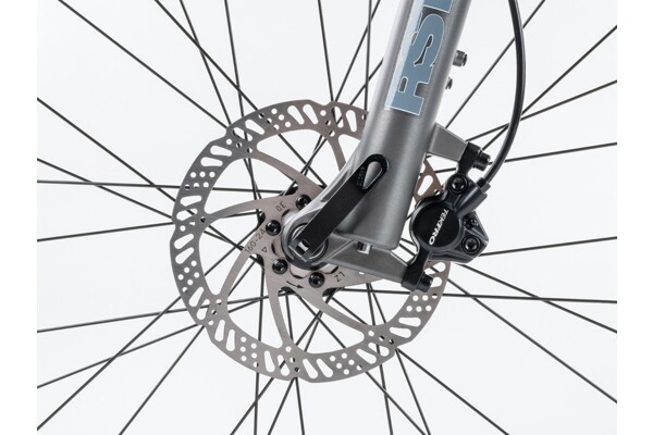 Sada Shimano Alivio v provedení 3 × 9 rychlostí je doplněna hydraulickými kotoučovými brzdami Tektro.