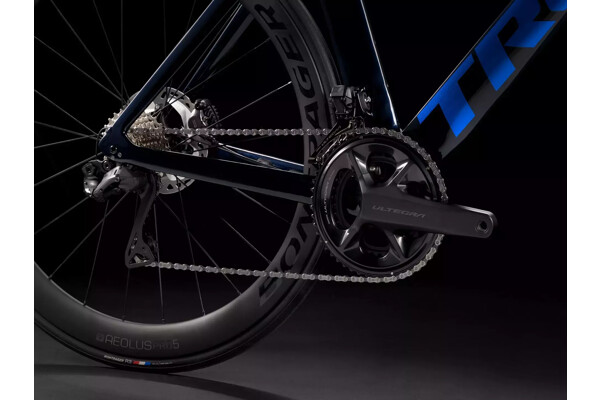 Lehký rám z karbonu OCLV řady 500 a vidlice s trubkami Kammtail Virtual Foil odolávající náporu větru, prvek IsoSpeed vyrovnávající nerovnosti silnic, zbrusu nová sada bezdrátových elektronických komponent Shimano Ultegra Di2 2x12, kola Bontrager Aeolus Pro 5 z karbonu OCLV umožňující použití bezdušových plášťů, výkonné hydraulické kotoučové brzdy a aerodynamická řídítka kompatibilní s aerodynamickými nástavci.