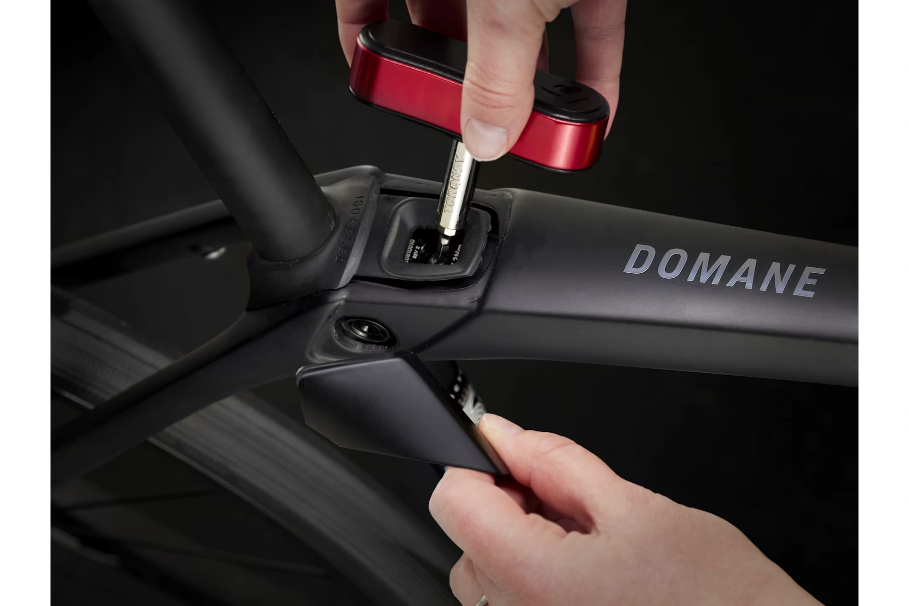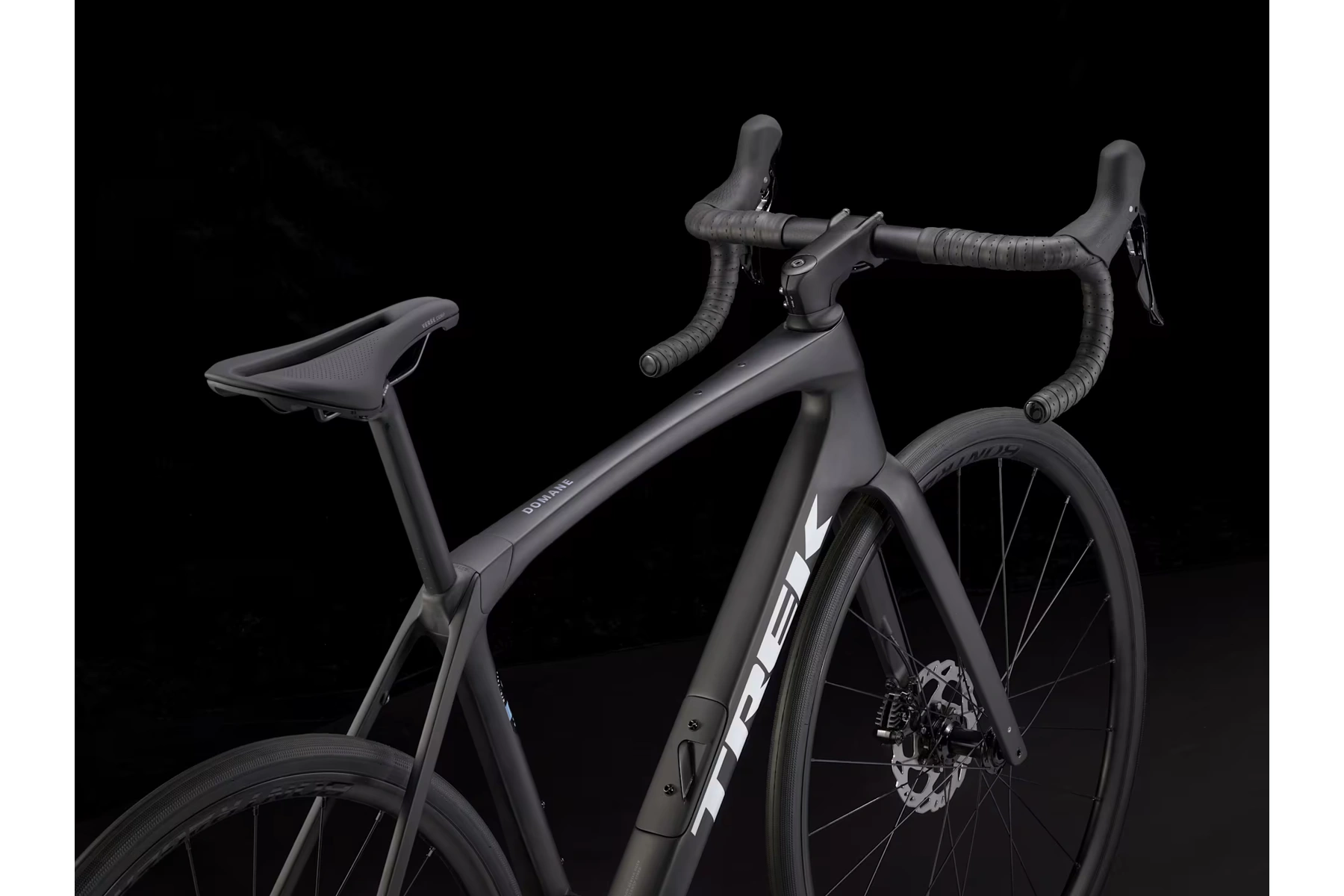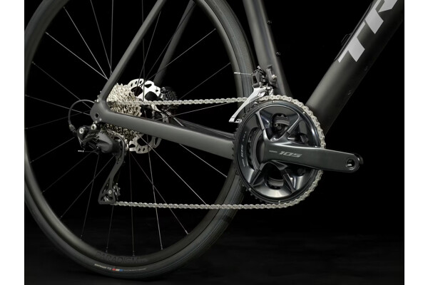 | Vidlice | Domane SL karbon, kónický karbonový sloupek, vnitřní vedení brzdových lanek, úchyty na blatníky, kotouč s úchytem Flat Mount, pevná osa 12 x 100 mm. |