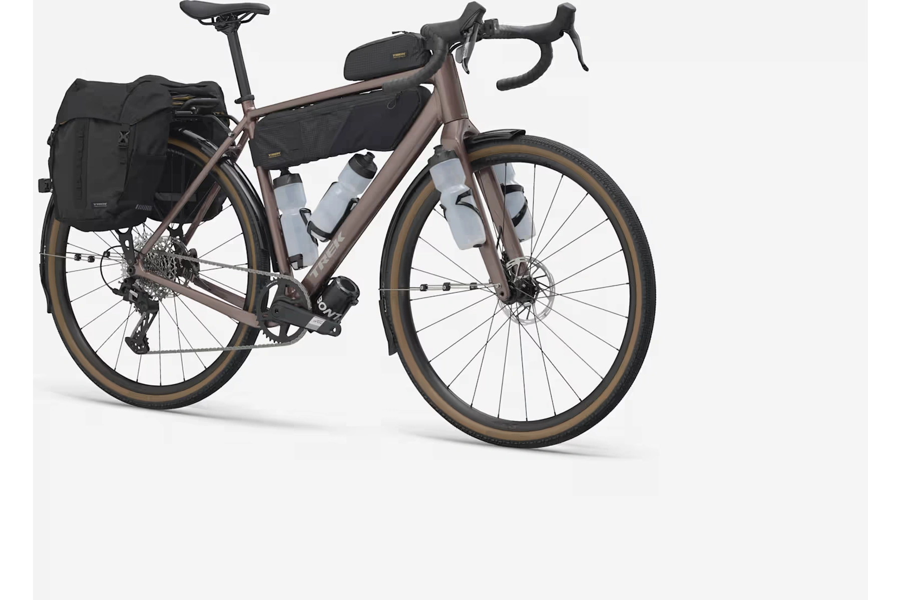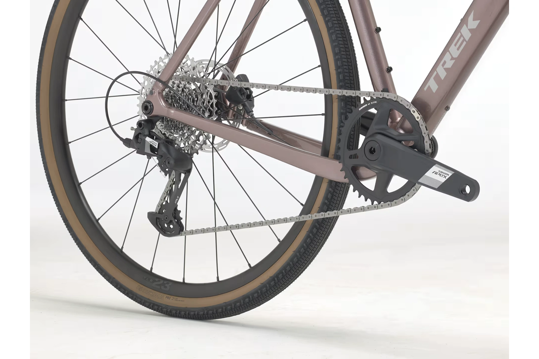 Tento gravel je vybaven 12rychlostním řazením SRAM Apex XPLR, hydraulickými kotoučovými brzdami, koly Bontrager Paradigm umožňujícími použití bezdušových plášťů a spoustou úchytů na brašny a vybavení.