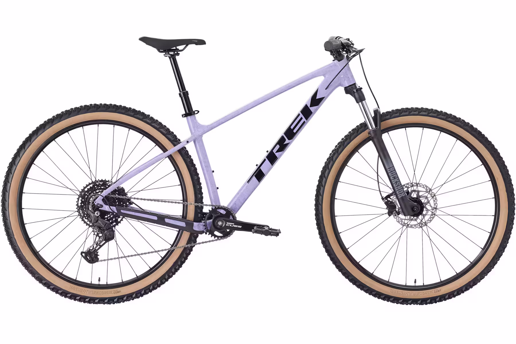Přední 100mm odpružená vidlice RockShox Judy, která tlumí nerovnosti na trailu včetně kamenů, kořenů a hrbolů, 10rychlostní hladké řazení Shimano CUES a impozantní brzdný výkon hydraulických kotoučových brzd.