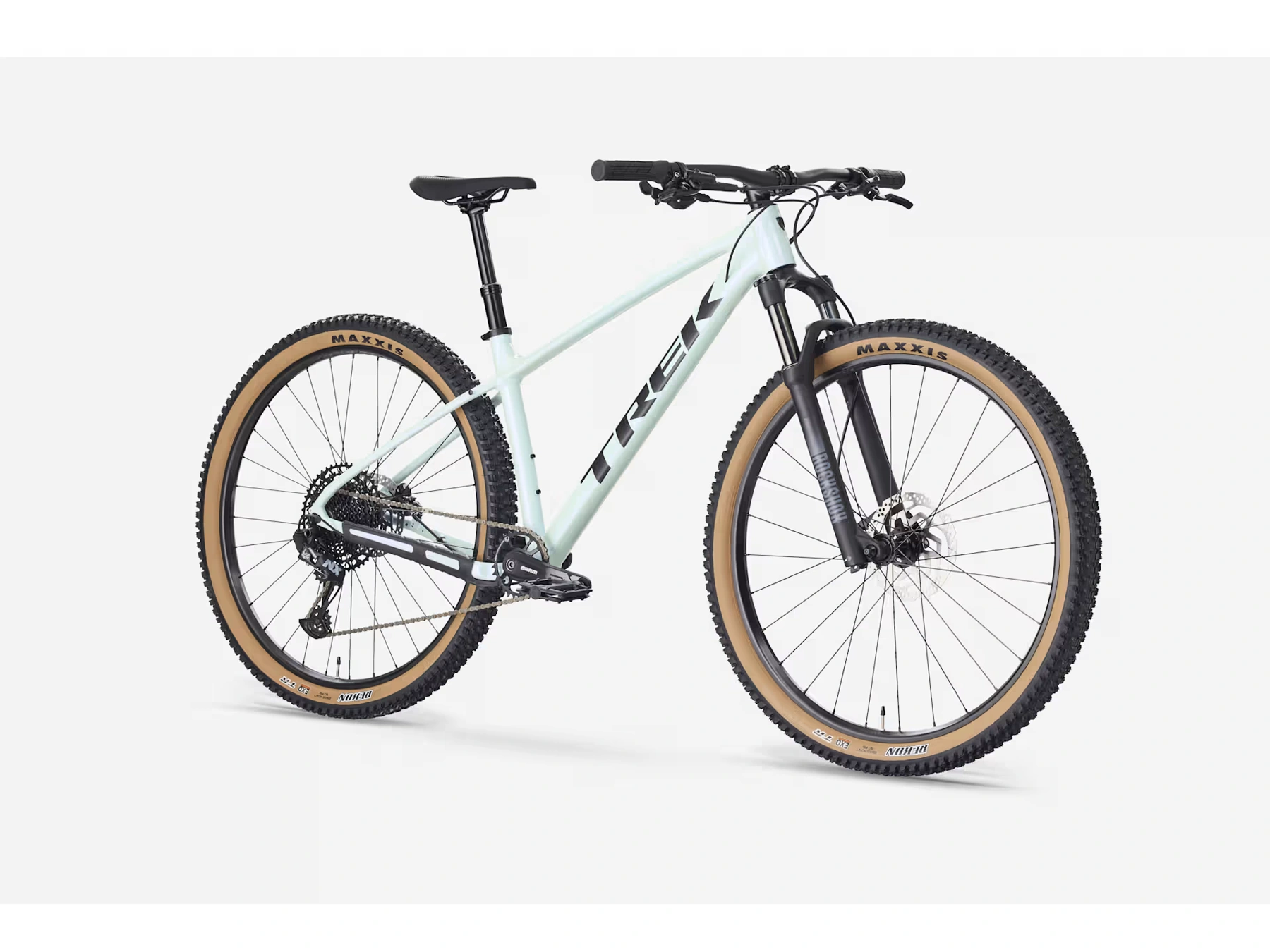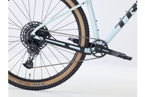Odpružená 100mm vidlice RockShox Judy tlumící velké nerovnosti, vylepšené 12rychlostní řazení SRAM NX Eagle a impozantní brzdný výkon hydraulických kotoučových brzd