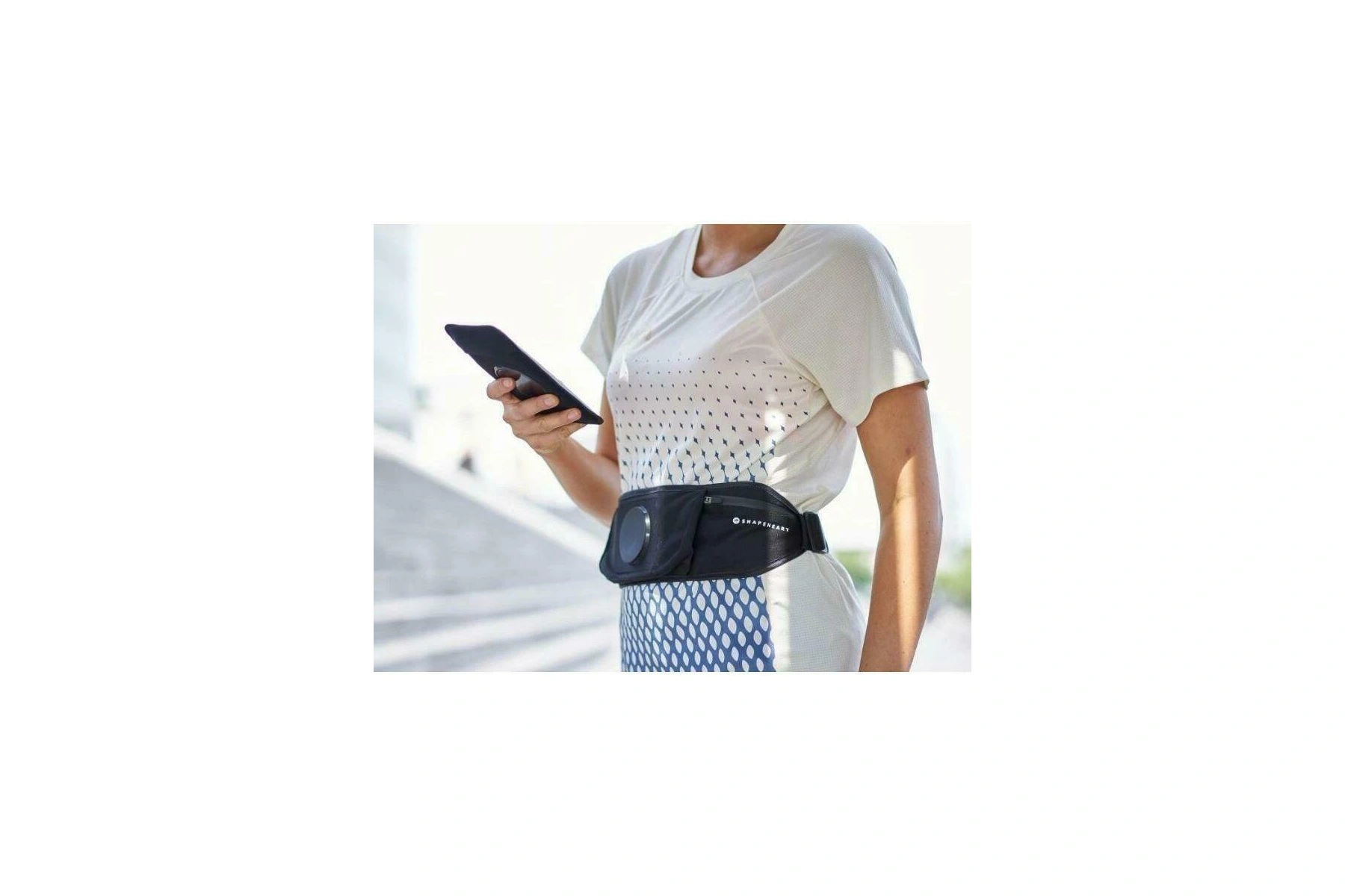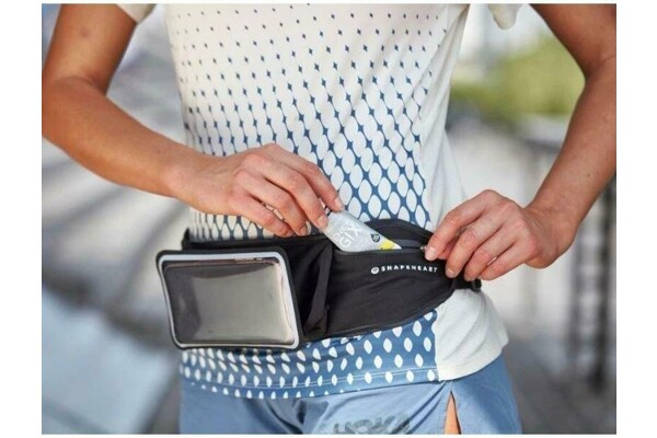 Pouzdro na telefon je voděodolné a má vstup na sluchátka. Pás je vyroben z neoprenu v jedné nastavitelné velikosti pro všechny běžce (XXS - XXL), má 2 boční kapsy na drobnosti (včetně klipu na klíče) a do centrální kapsy lze vložit 2 Soft Flasky (měkké láhve na pití; lze samostatně dokoupit). Telefon lze snadno ovládat i v pouzdru, dotykový displej funguje i přes krycí fólii
