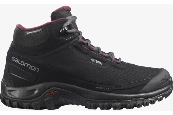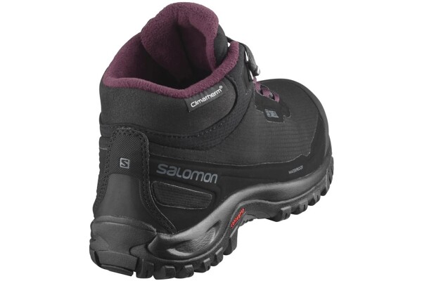 Salomon Shelter CSWP je městská zimní obuv vyznačující se civilním vzhledem, jedinečným tvarem a nepromokavou ochranou ClimaSalomon™ Waterproof (CSWP). Tepelná izolace Climatherm™ udrží nohu v teple při stání, při chůzi po městě nebo přírodou. Poddajný, prodyšný a odolný materiál, který chrání před deštěm, sněhem a venkovními podmínkami s lehkou tepelnou izolací.