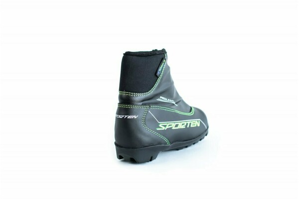 Inovovaný pohodlný dětský model Sporten Favorit Jr PROLINK v černomodrém designu pro častější turistiku na běžkách, je vyráběn i pro nový upínací systém firmy SALOMON - PROLINK®.