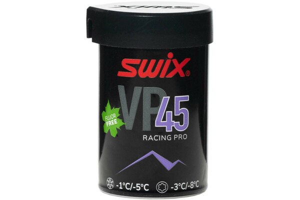 Vosk Swix VP45 Pro Blue/Violet je stoupací vosk navržený speciálně pro nový a jemnozrnný sníh v rozmezí teplot od -1 °C do -5 °C. Výborně funguje také na starém nebo částečně přeměněném sněhu při teplotách od -3 °C do -8 °C.