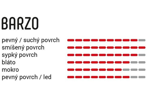 Středový vzorek je navržen pro rychlé odvalování, zatímco moto-styl bočních špuntů zajišťuje pevný záběr v zatáčkách.