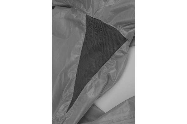 Lehká cyklistická bunda je vyrobena z nepromokavého, větruodolného materiálu s membránou AquaShell™, která poskytuje spolehlivou ochranu i v nepříznivém počasí. Díky vodnímu sloupci 5 000 mm a podlepeným švům nabízí 100% ochranu proti dešti. Pro zachování komfortu při jízdě jsou bunda doplněna o panely z elastické síťoviny AirMesh™, které zajišťují efektivní ventilaci a odvod vlhkosti. Extra prodloužená zadní část chrání záda před odstřikující vodou, zatímco elastický pas a zakončení rukávů zvyšují pohodlí při nošení. Bunda je vybavena dlouhým předním zipem s krytkou, skládací kapucí a praktickou kapsou, do které ji lze snadno sbalit. Reflexní bezpečnostní prvky zvyšují viditelnost za zhoršených světelných podmínek.