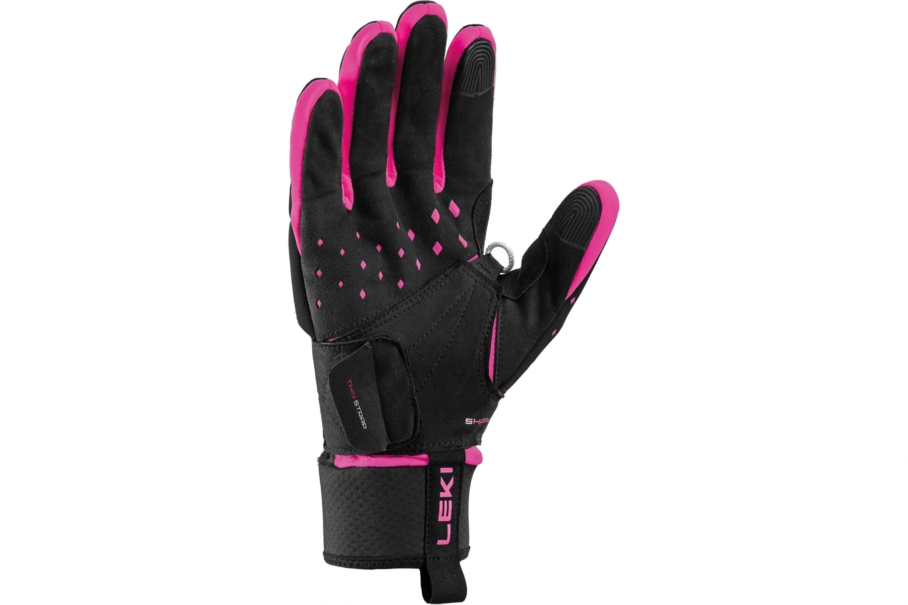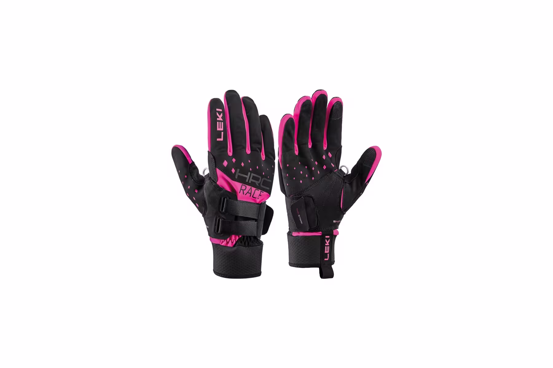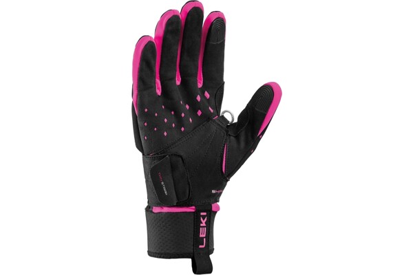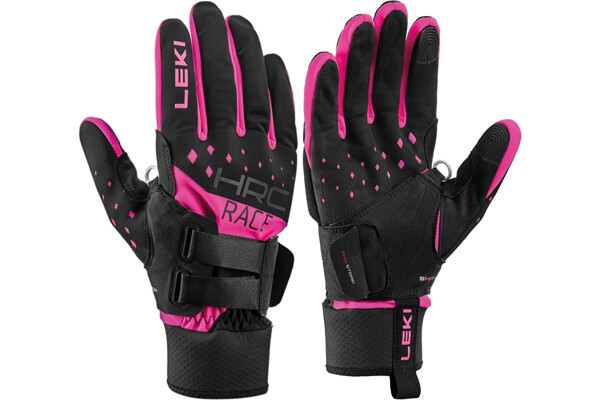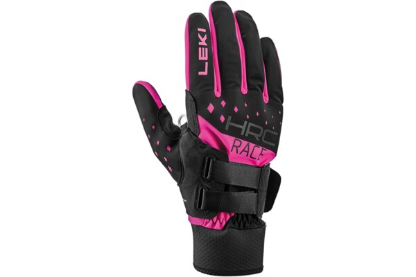 Univerzální závodní rukavice Leki HRC Race Shark pro sportovní použití. Nově vyvinutý dvojitý pásek na integrované smyčce zajišťuje ještě individuálnější přizpůsobení střihu, a tím ideální přenášení síly a její rozdělení přímo ze středu ruky na hůl.