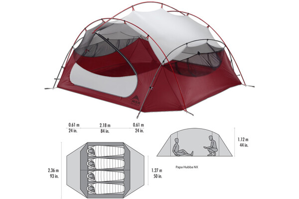 Představte si největší a současně nejlehčí vysoce propracovaný samonosný stan pro více přátel – to je MSR® PAPA HUBBA™ NX, nový a nejprostornější přírůstek do kolekce MSR Hubba NX. Vychází z legendárních modelů světoznámé americké značky a se svou váhou pouhých 2.67 kilogramu (tj. méně než 0.7 kg na osobu) ho sbalíte lépe než většinu dvoumístných stanů. Papa Hubba NX byl vyvinut jako nejlépe obyvatelný, ultralehký prostorný stan pro 4 lidi stále ještě vhodný na treking a backpacking. Je speciálně navržen k 3-sezónnímu použití a jeho hmotnost Vás nebude nijak omezovat, ať už vyrážíte jako skupina k intenzivním útokům do skal nebo na dlouhý přechod hřebene. Pravidelný tvar podlážky, která se nezužuje a je symetrická, maximalizuje vnitřní prostor společně s použitím speciálních tyčí DAC, které vyklenou lepší oblouk pro větší prostor hlavě a horní části trupu. Věříme, že i díky dalším detailům, jako jsou vstupy StayDry™, nastavitelné větrání a odolné kotvení, je stan MSR Mutha Hubba NX tak pohodlným, že už Vás při spaní v něm nikdy nebude trápit klaustrofobie.
