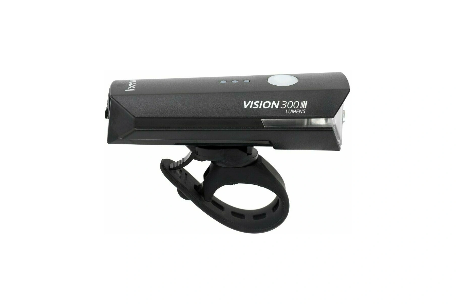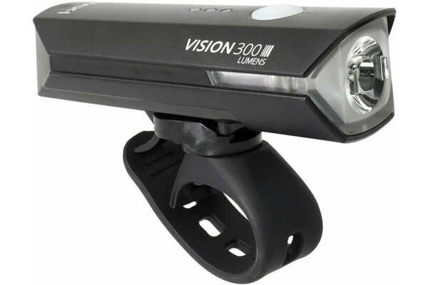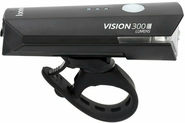 Výkonné dobíjecí přední světlo MAX1 Vision 300. Světlo s vysokým světelným výkonem 300 lumenů. Díky pružnému gumovému popruhu světlo snadno připevníte na každá řidítka.