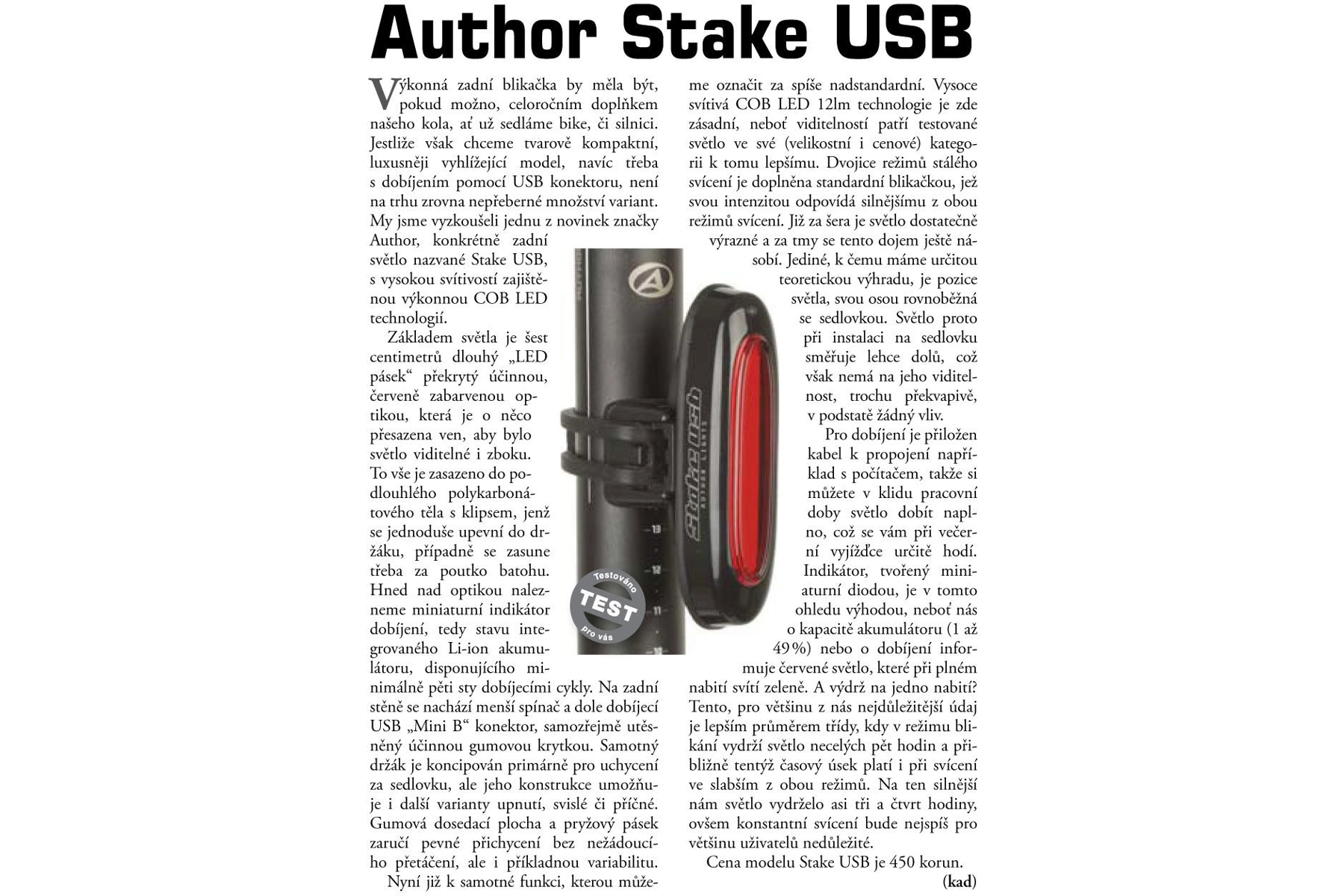 Velice výkonné zadní světlo Author Stake USB s vysokou svítivostí COB LED technologií za rozumnou cenu.