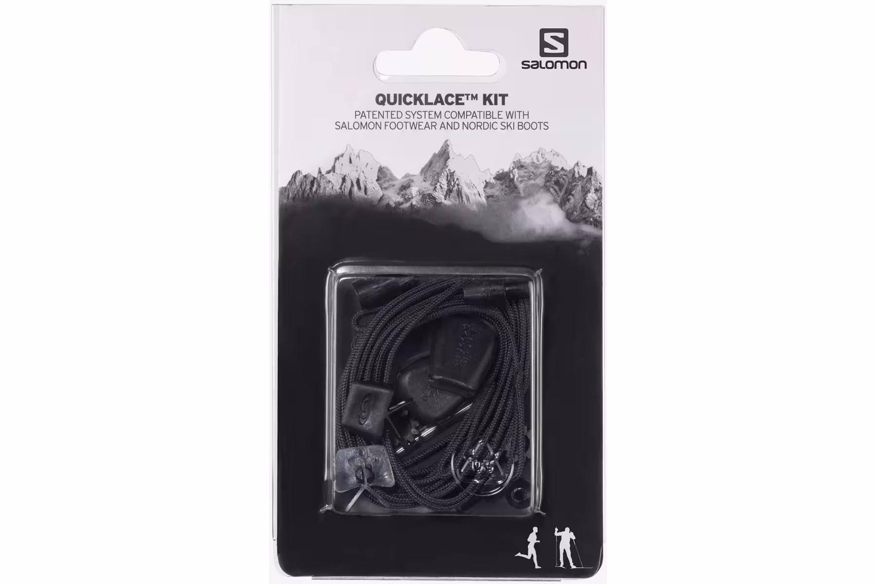 Patentovaný systém šněrování SALOMON, který je kompatibilní s většinou modelů obuvi Salomon a botami určenými pro běžecké lyžování.