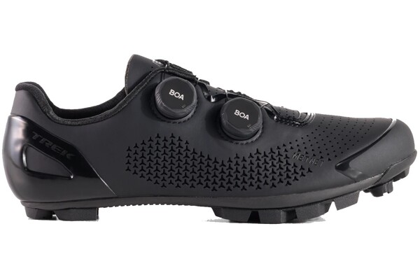 Mají nejtužší a nejlehčí podrážku 100% z karbonu OCLV k využití každičkého wattu. Systém zapínání BOA s dvěma kolečky Li2 a odlehčovacími zónami METNET pohodlně ukotví nohu pro jedinečnou účinnost. Mají závodní tachyonovou podrážku a odnímatelné hroty na špičce a patě pro maximální trakci mimo sedlo.
