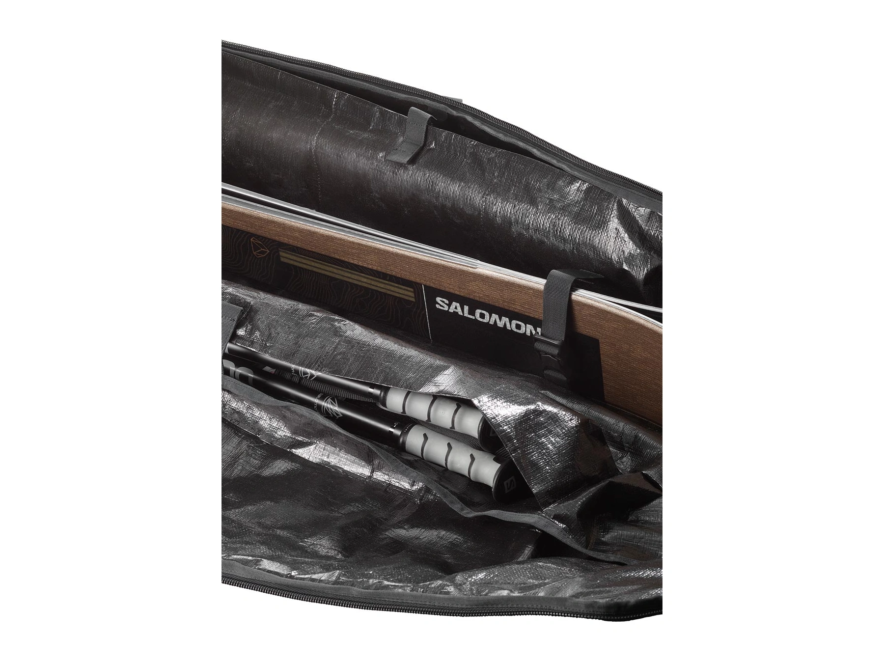 • Chytré uspořádání : veškeré vybavení má svůj vyhrazený prostor: lyže s popruhy, hůlky se 2 obaly a 2 velké síťované kapsy na zip.