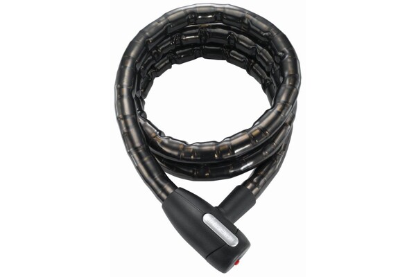 Tuhé ocelové lano je kryto hliníkovými články a tvrdým ochraným plastem a bezpečnostní hlavou, délka 1800mm a průměr 25mm, 5 klíčů. Hmotnost 1350 g.